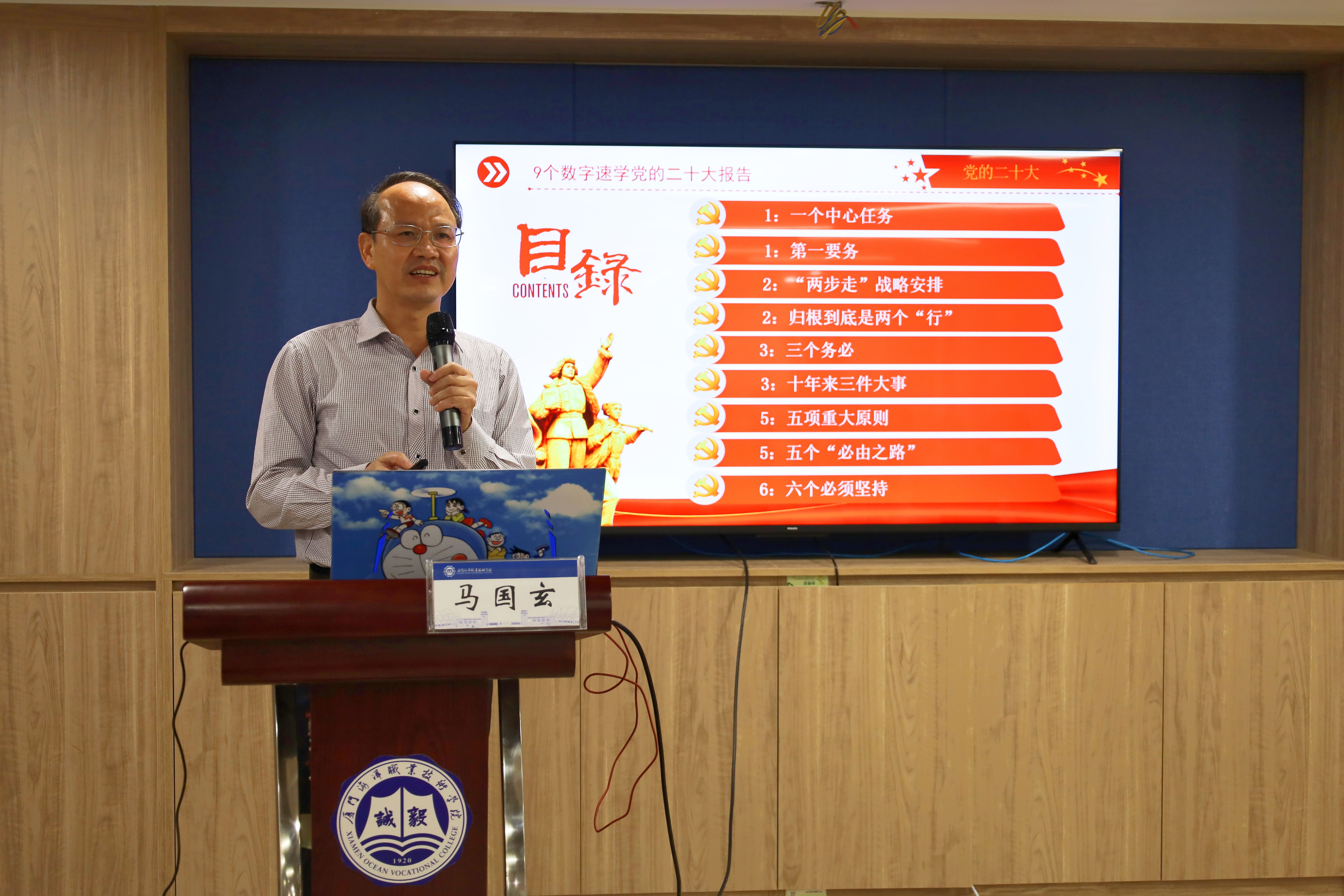 马国玄以9个数字为关键词,深入解读了党的二十大主题和党在今后一个时期的中心任务,重点解读了党的历史使命、“三个务必”、新时代十年伟大变革的里程碑意义、中国式现代化的特征、前进道路上的五项重大原则、开辟马克思主义中国化时代化新境界的“六个坚持”、2035年要实现的总体目标、实现中国式现代化的本质要求等系列重大战略部署。党课主线清晰、内容丰富、重点突出、深入浅出,让在场师生对党的二十大精神有了更加深刻的理解和认识。