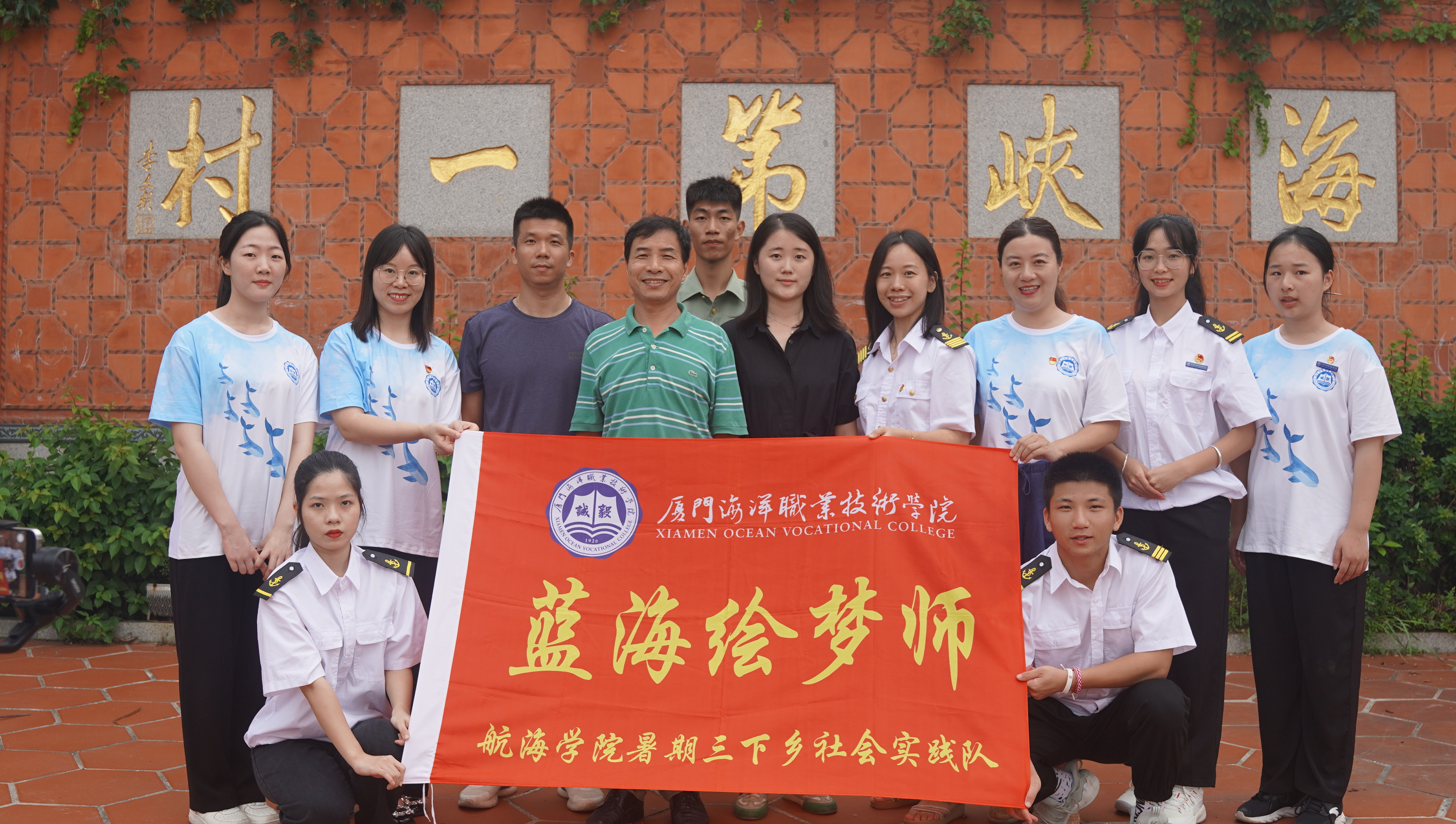 有这么一支朝气蓬勃的大学生实践队,用丰富多彩的活动为晋江市金井镇围头村的小学生们带来多彩的暑假。在指导老师的带领下,实践队先后开展了实践基地共建、海丝文化传播、海洋知识科普、海洋问卷调查、海洋产业调研、退伍老兵慰问等系列活动。他们是厦门海洋职业技术学院航海学院“蓝海绘梦师”暑期三下乡社会实践团队。