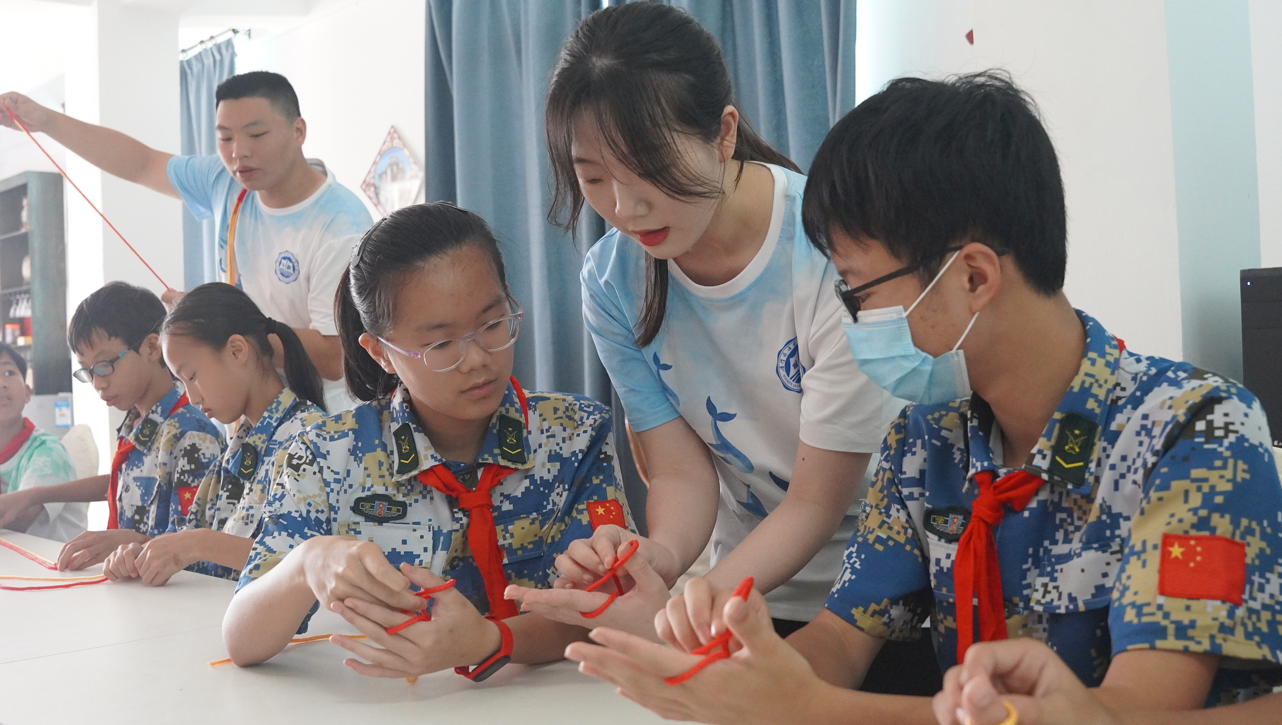 厦门海洋职业技术学院创办于1920年,校主陈嘉庚先生目睹旧中国“门户洞开,强邻环伺”之状况,秉持“开拓海洋、挽回海权、培育专才”之誓言创办学校,成为我国最早培养水产航海技术人才的摇篮之一。围江学校创办于1920年,学校在炮火中分拆到各地,但从未停下办学的脚步。此次“蓝海绘梦师”实践队来到围江学校,开展“蓝色海洋知识”讲座,围绕海洋权益维护、海洋资源、海洋文化等领域,讲述灯塔文化历史、海洋地理、海军舰艇知识。实践队现场普及航行中专业绳结的作用,开展“大手牵小手”海丝结工艺品编织比赛,从认识海洋、保护海洋、海洋强国等方面入手,点燃了孩子的海洋梦,为我国海洋强国建设培养了一批小小接班人。