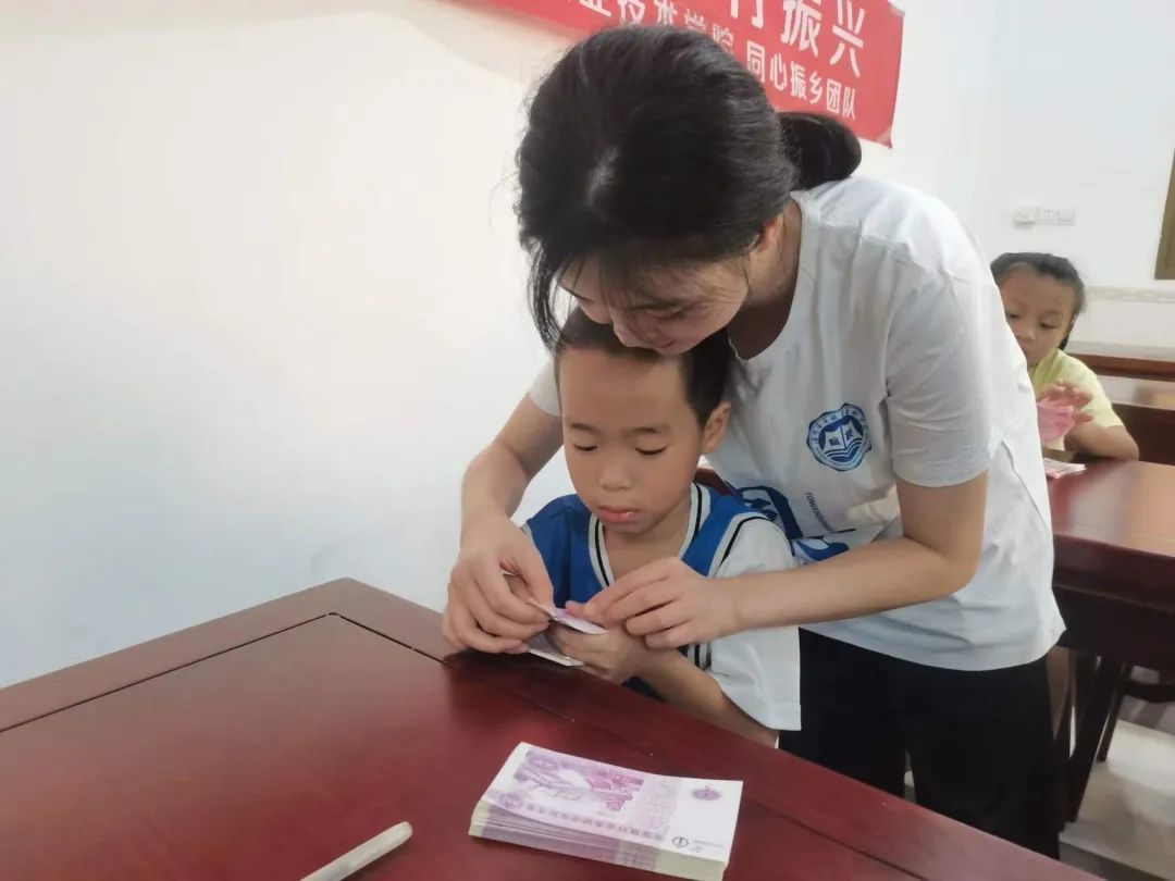 在记账小专家活动中,实践队员一对一教学,教小朋友们如何进行简单地记账、如何守住自己的“钱袋子”。本次课程不仅开拓小朋友们的视野,也帮助他们从小养成正确的理财观和消费观。