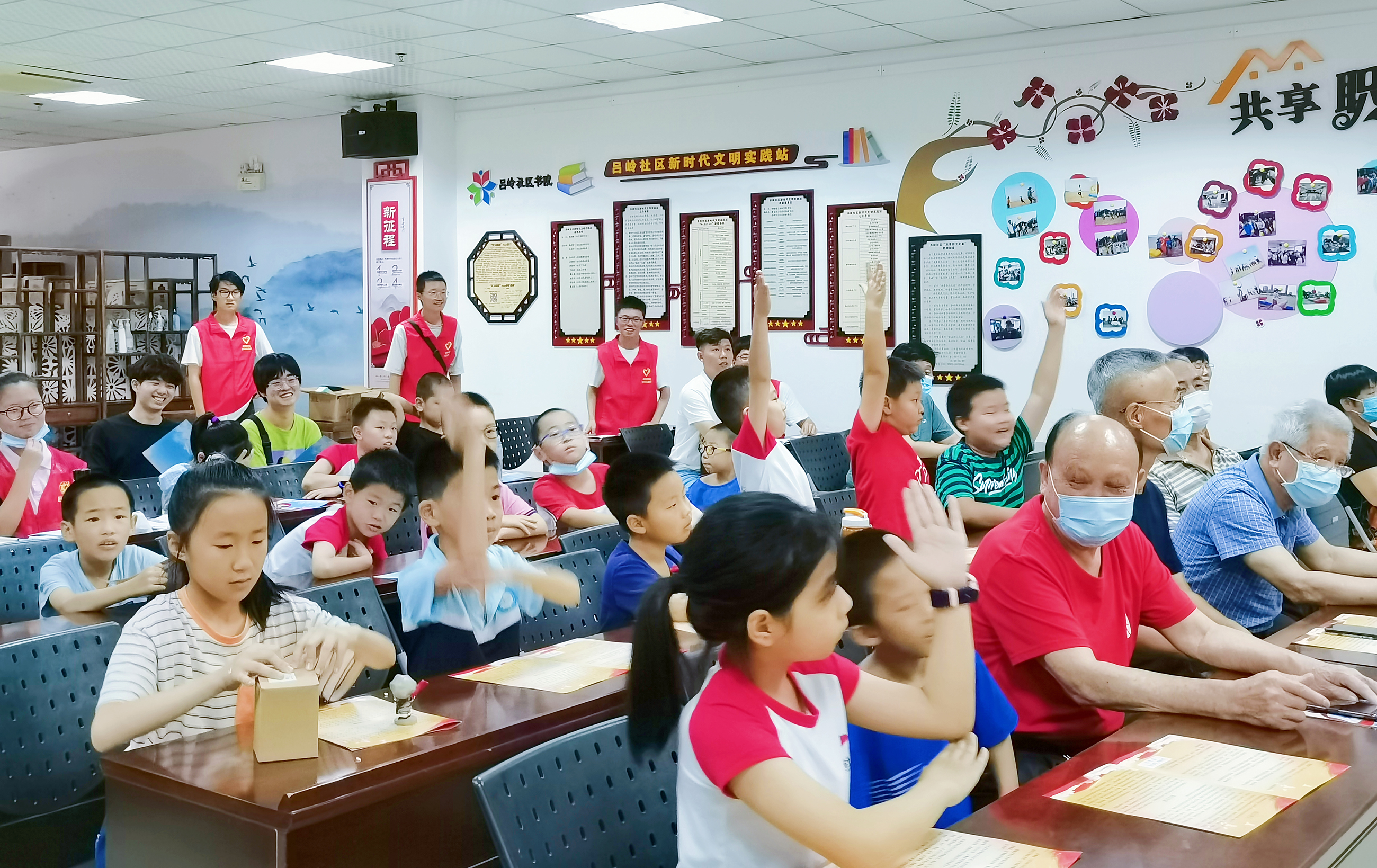 海洋机电学院“红色信使”实践队在吕岭社区开展了“童心向党,共学嘉庚精神”的主题宣传活动。队员们以生动活泼的语言、通俗易懂的案例讲解陈嘉庚先生的故事,通过分发宣传手册、知识问答、分享学习心得等环节,提高小朋友学习兴趣。小朋友们争先恐后地举手抢答,现场氛围热烈。