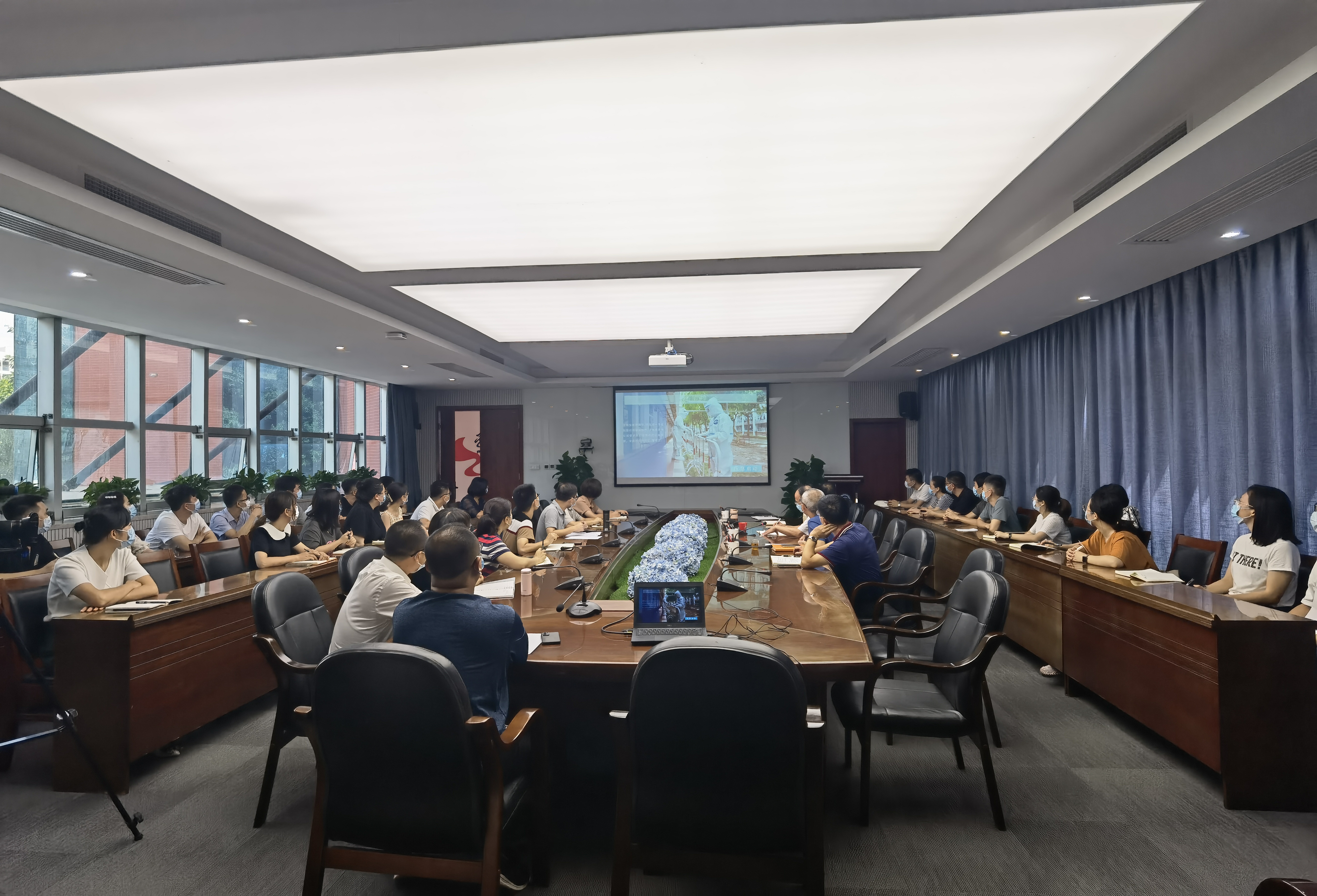 马国玄指出,各部门要始终绷紧疫情防控这根弦,高度重视疫情防控和安全稳定工作,将工作做实做细;要应急准备到位,提升全体师生防控应急能力;要宣传教育到位,各成员单位要结合部门工作实际,开展特定群体演练和业务培训,提高疫情防控快速反应能力;要协同配合到位,各二级学院要根据学校秋季返校工作方案,细化防控措施,制定具体返校方案;要加强沟通,密切配合,多措并举,确保疫情不进校,共同推进学生安全有序返校。