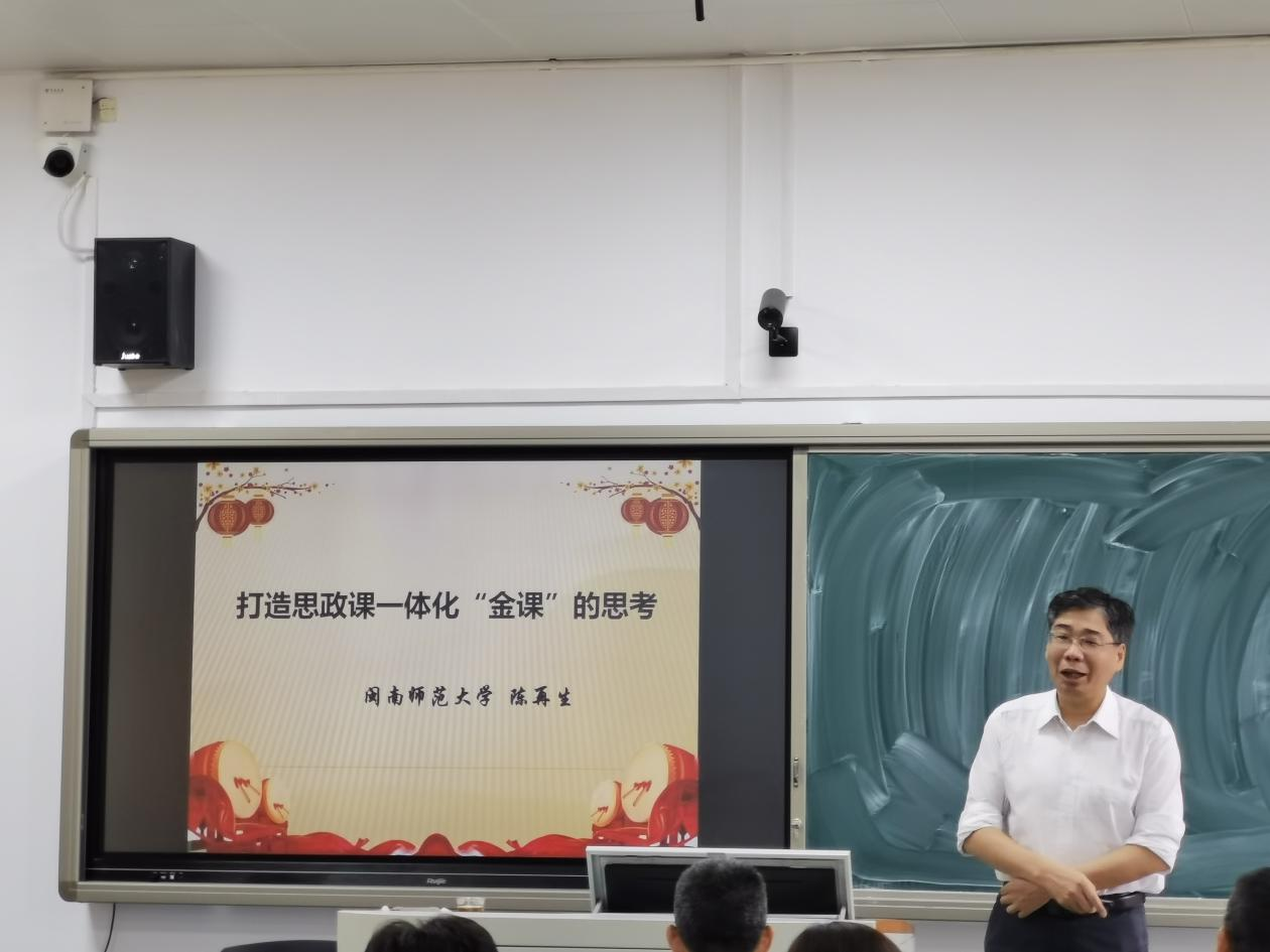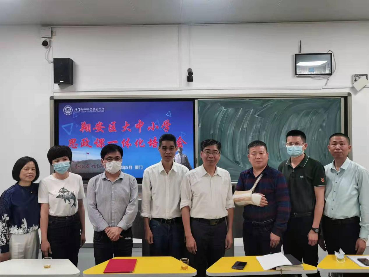 近日,我院马克思主义学院召开翔安区大中小学思政课一体化培训会,闽南师范大学马克思主义学院院长陈再生教授受邀为我院全体思政课教师、翔安区中小学思政课教师代表作《打造思政课一体化“金课”的思考》专题讲座。