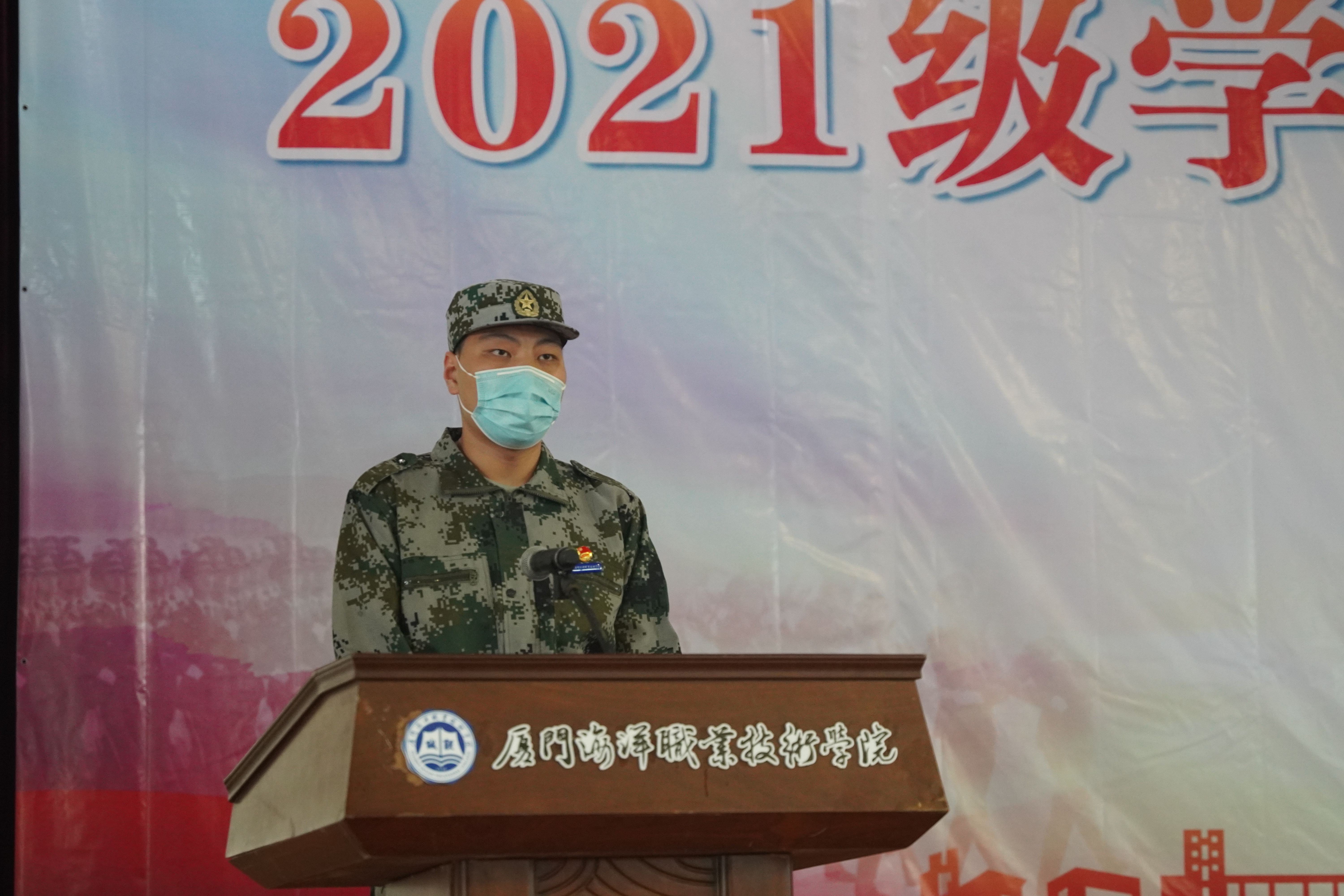 2021级学生伍宗宸、张群杰代表全体参训学生庄严承诺,听从命令,服从指挥,顽强拼搏,不畏艰辛,团结互助,高标准、高质量地完成好本次军训,用自己的意志和汗水留下美好青春记忆。