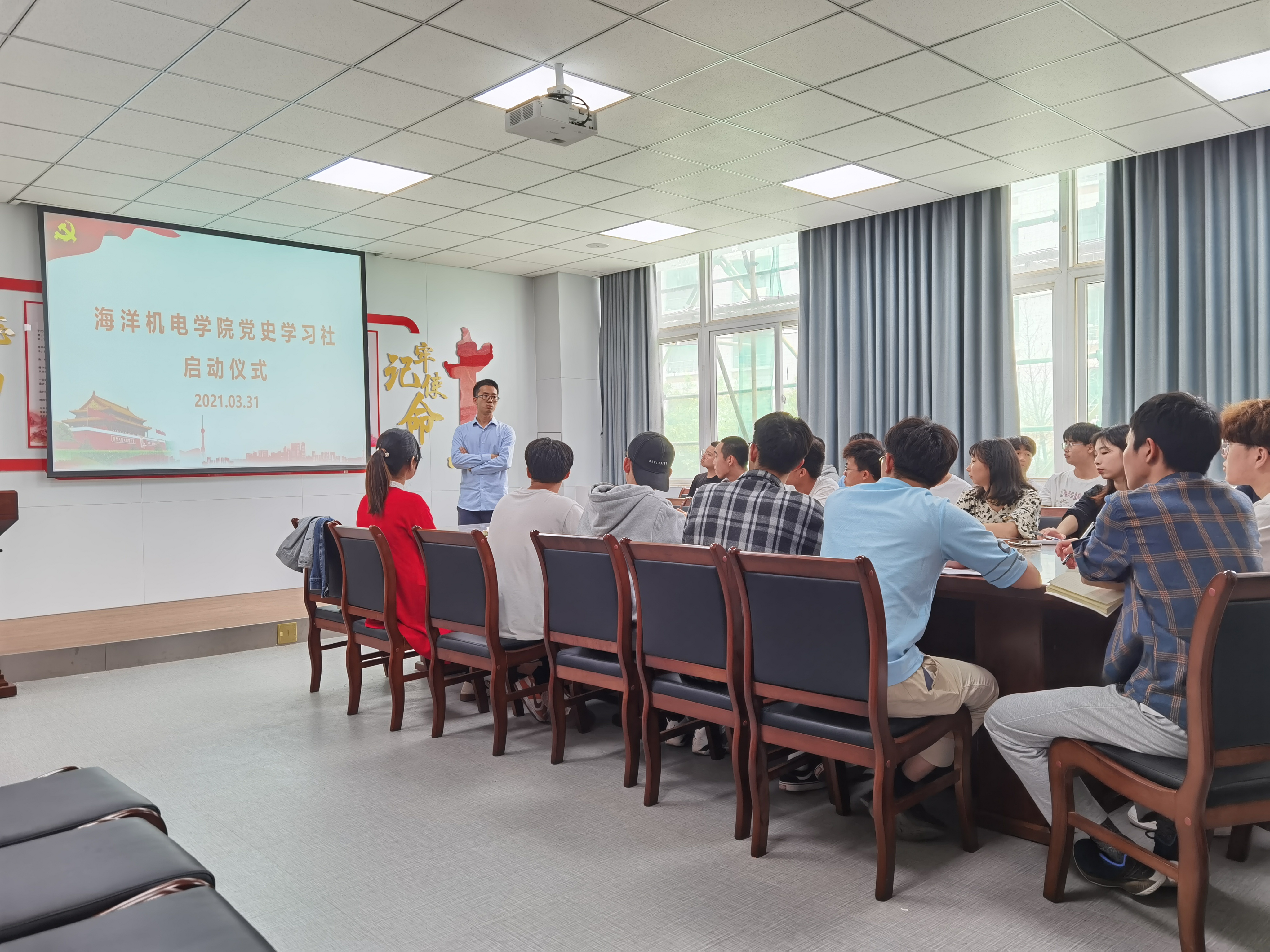 3月31日,海洋机电学院学生“党史学习社”成立仪式在学院党员活动室举办,28名学生入党积极分子参加。
