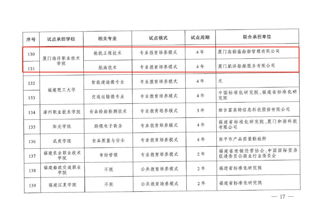 近日,市场监管总局与教育部联合印发《关于公布专业与标准化教育融合试点名单的通知》,全国共281个试点项目入选。我校航海技术、轮机工程技术2个专业成功入选,标志着学校在复合型技术技能人才培养方面迈上新台阶。