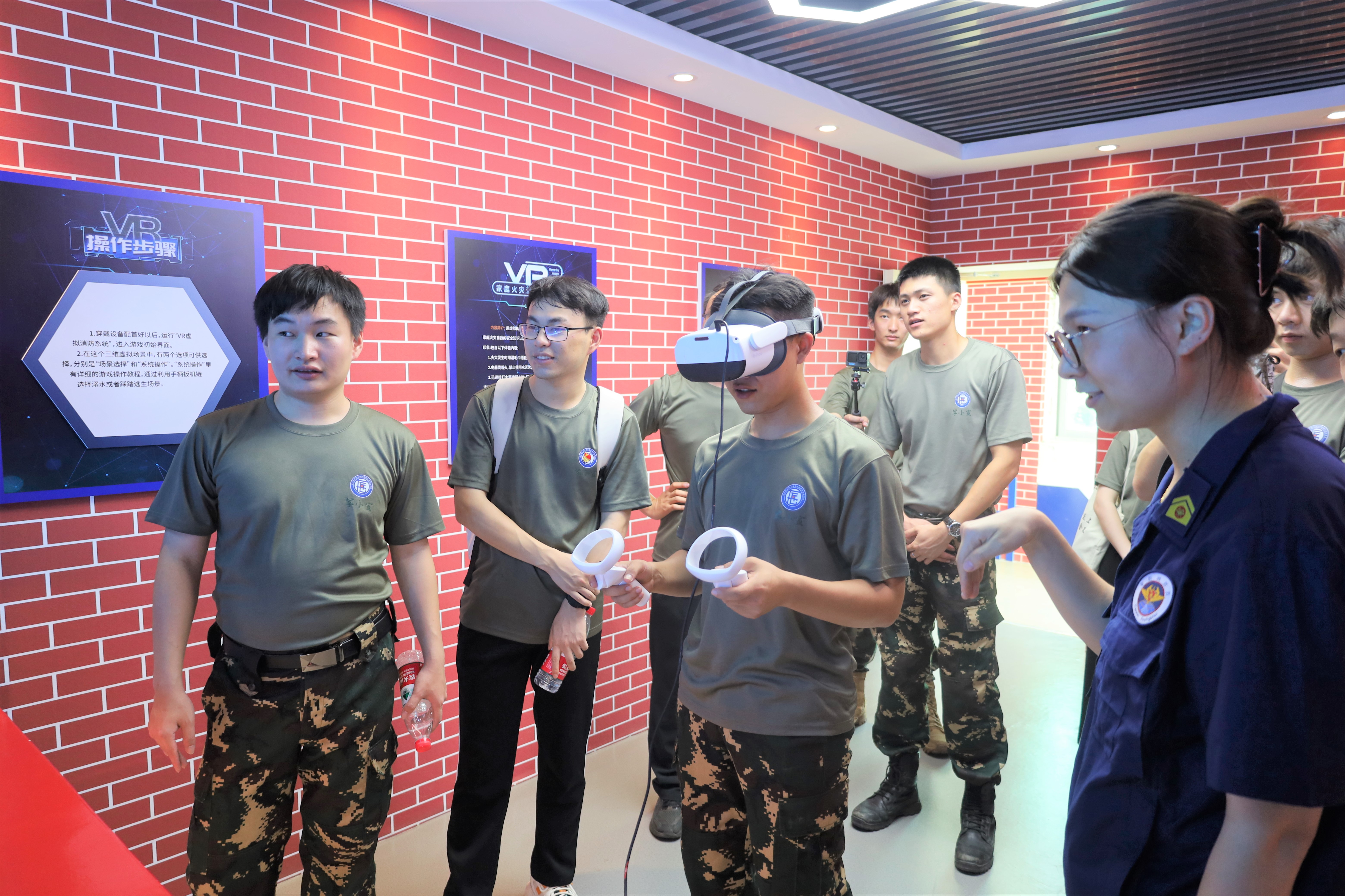 随后,在工作人员郭雅妮的带领下,“军小宣”实践队前往厦门市翔安区大嶝街道英雄三岛社区消防安全教育馆进行参观学习。在VR火灾模拟中,沉浸体验火灾发生时的应急自救方法;在电动车火灾模拟中,直观感受违规充电带来的巨大危害;在24种消防结绳体验中,重温实战经验;在消防知识答题擂台中,展示看家本领花式比拼……当安全教育插上科技的翅膀,复杂的消防知识更具形象化、生动化。“军小宣”成员在沉浸式场景体验中,不断吸收学习,刷新知识储备,提高应急能力,为后续开展相关消防教育活动开拓了思路。