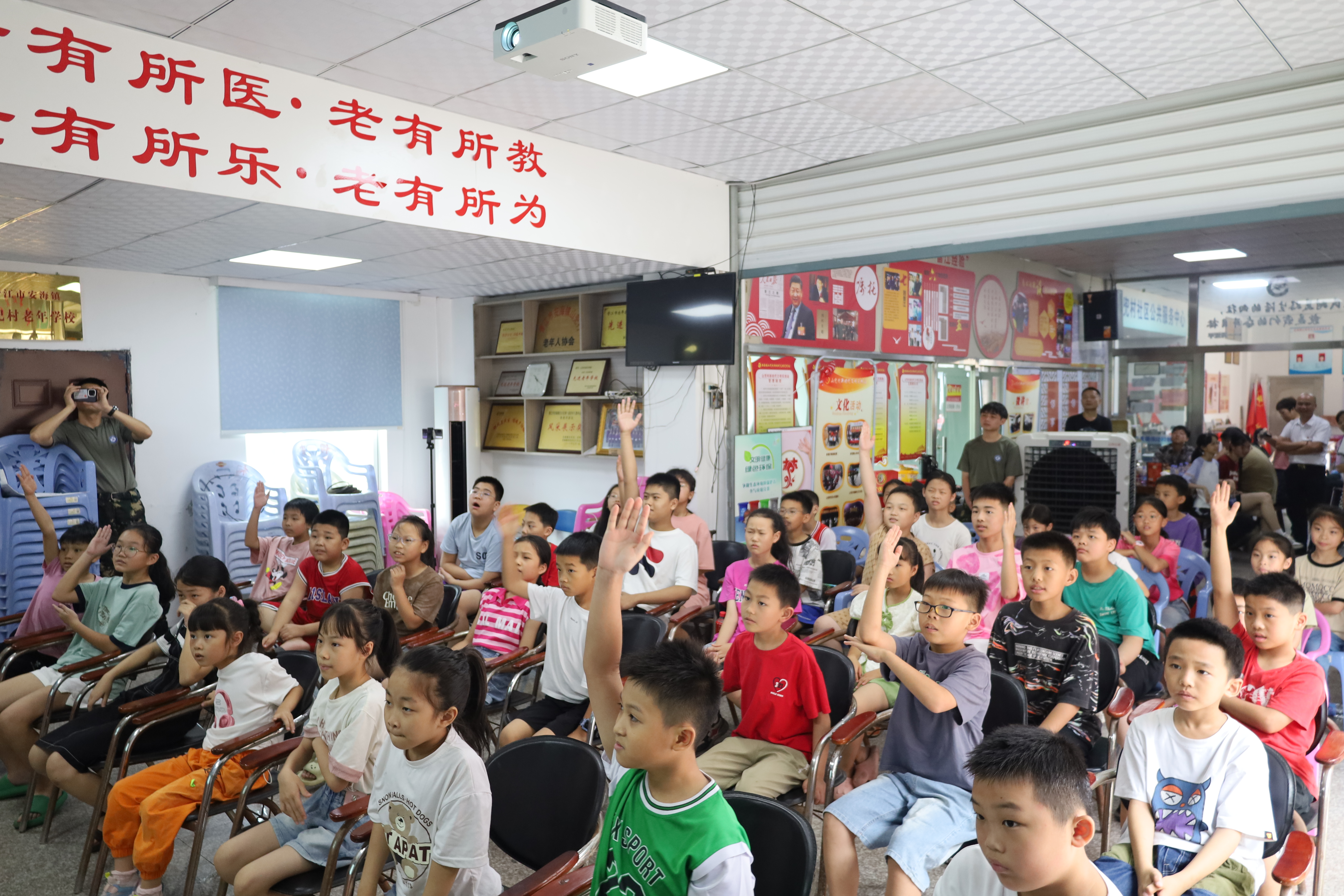 火灾猛于虎,预防是关键。退役大学生士兵谢锦辉用通俗易懂的语言带领小朋友们学习消防标识,演示消防设施使用方法,介绍真实的火灾案例,并分享暑期在家防灾和应急逃生知识。活动现场还设置了“知识快问快答”“你比我猜”等互动游戏,让小朋友们更直观地了解消防、认识消防,增强消防安全意识。小朋友们争先恐后地举着手,现场氛围感十足。