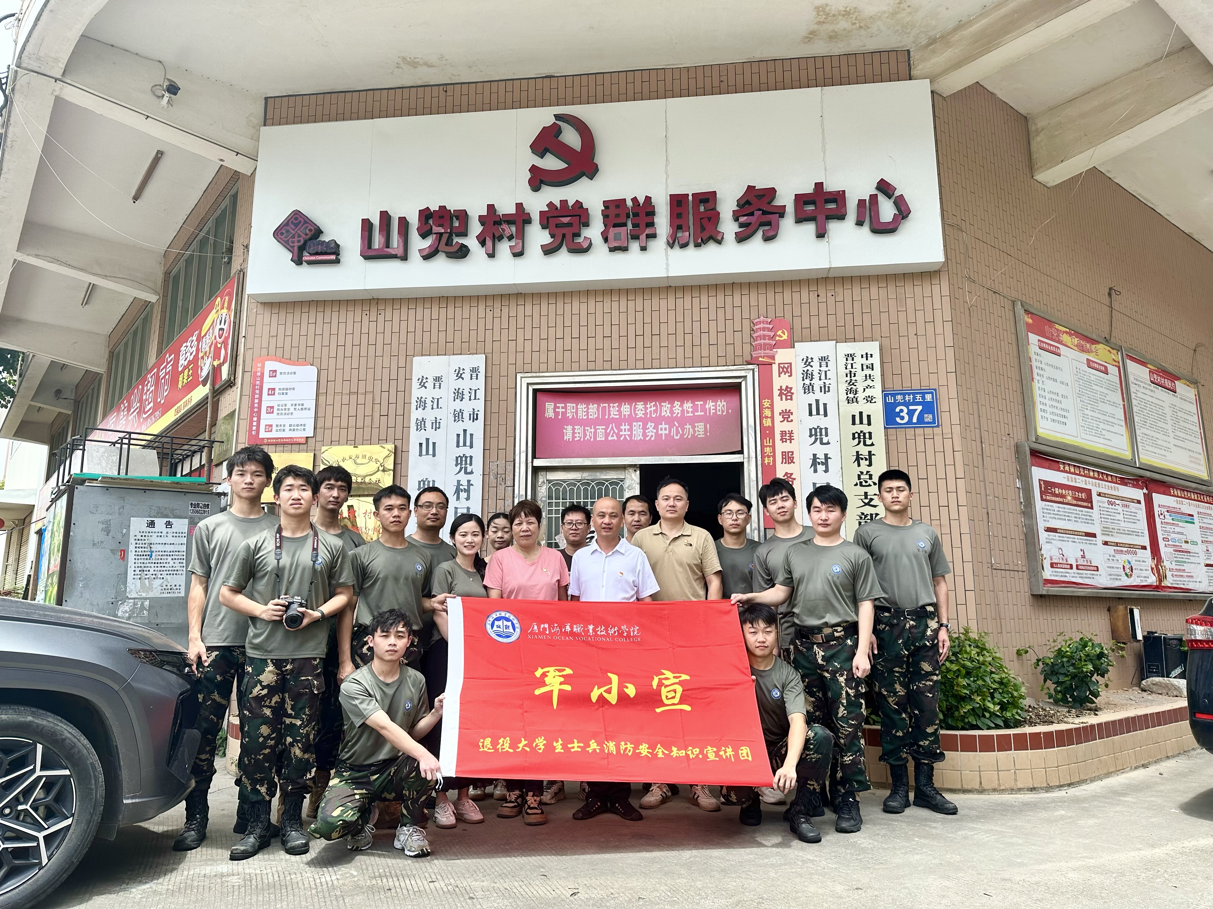 为进一步加强青少年对突发事件的应变能力,增强消防安全意识,创建安全和谐的美丽农村,切实发挥退役大学生士兵志愿服务力量,7月2日,海洋机电学院苏小青、汪星星、高贾顺带领“军小宣”退役大学生士兵消防安全知识宣讲团前往厦门市翔安区大嶝街道英雄三岛社区消防安全教育馆、晋江市安海镇山兜村开展暑期“三下乡”社会实践活动。