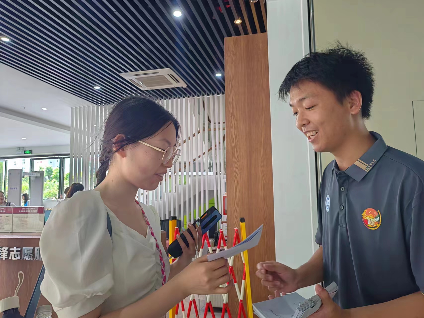 实践队员们还积极地化身为热情的志愿者,为游客提供方位指引和解答各类疑惑,并分发了实践队员自制的博物馆宣传手册。