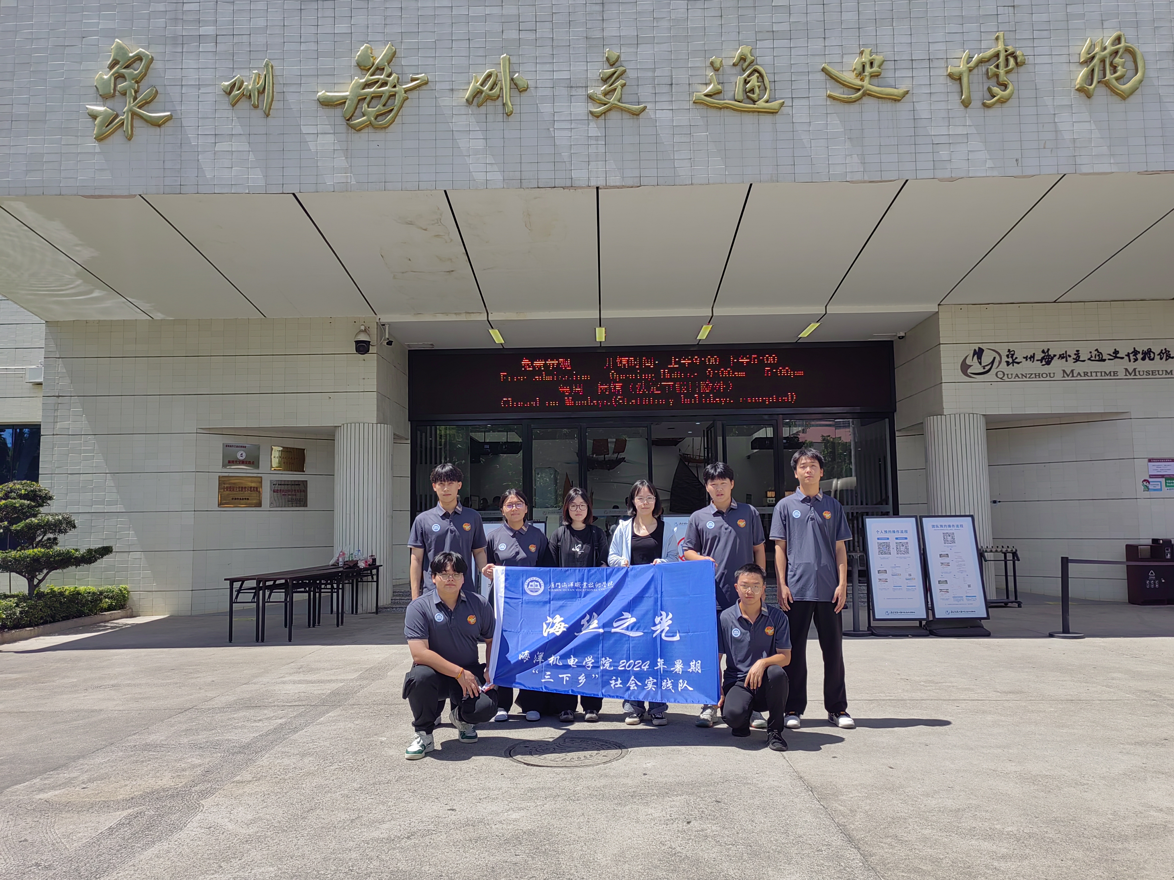 博物馆是人类文明的珍贵守护者和传承者,承载着连接过去、现在和未来的重要使命。为进一步增强文化自信,感受并体验文化的独特魅力,我校“海丝之光”社会实践队于7月4日启程,由指导老师周晓维带队前往泉州海外交通史博物馆开展暑期“三下乡”社会实践活动,通过参观、分享、采访等形式进一步挖掘和了解古代海外交通、海上丝绸之路,以及由此引发的各种经济、文化交流故事。