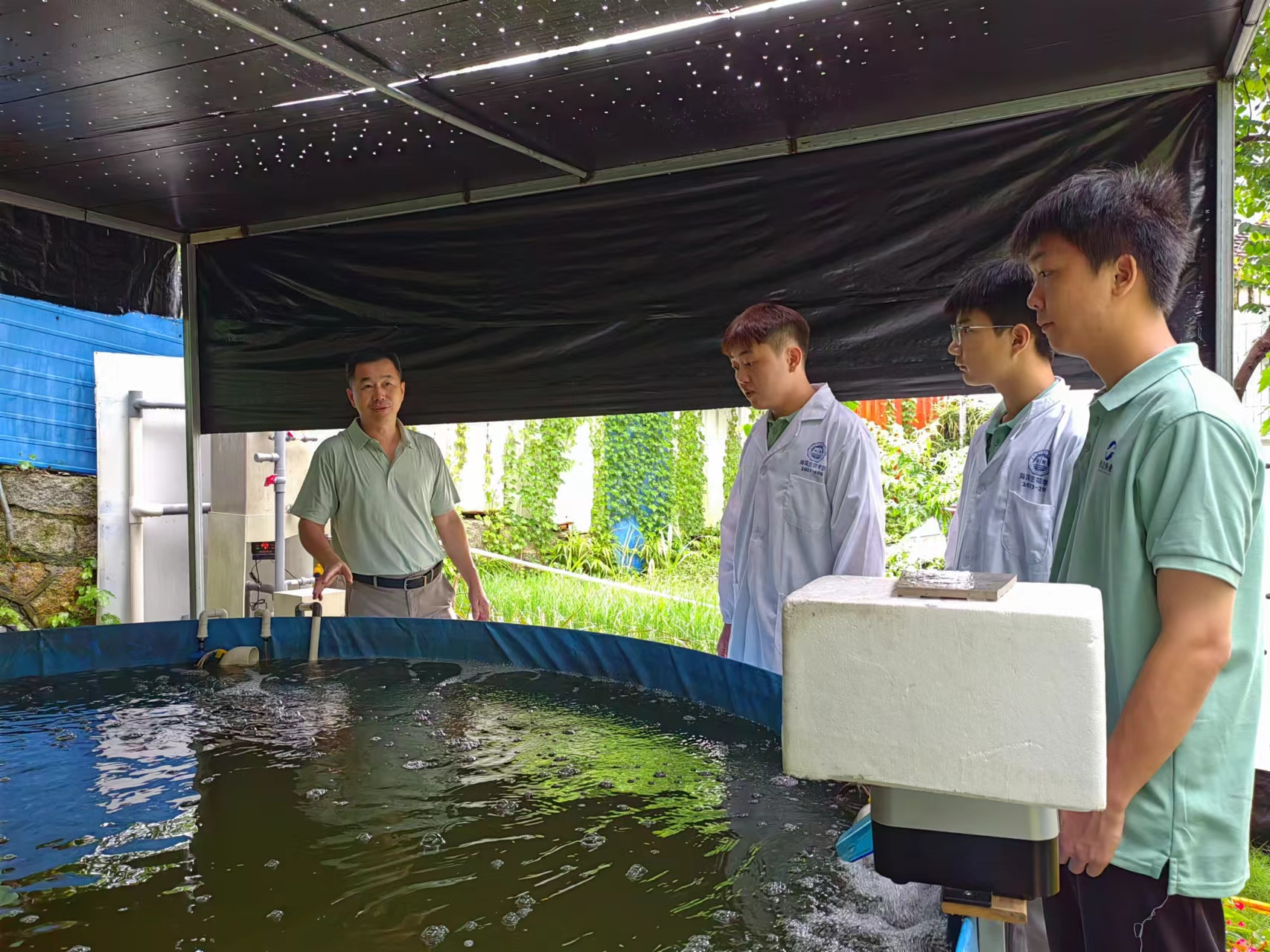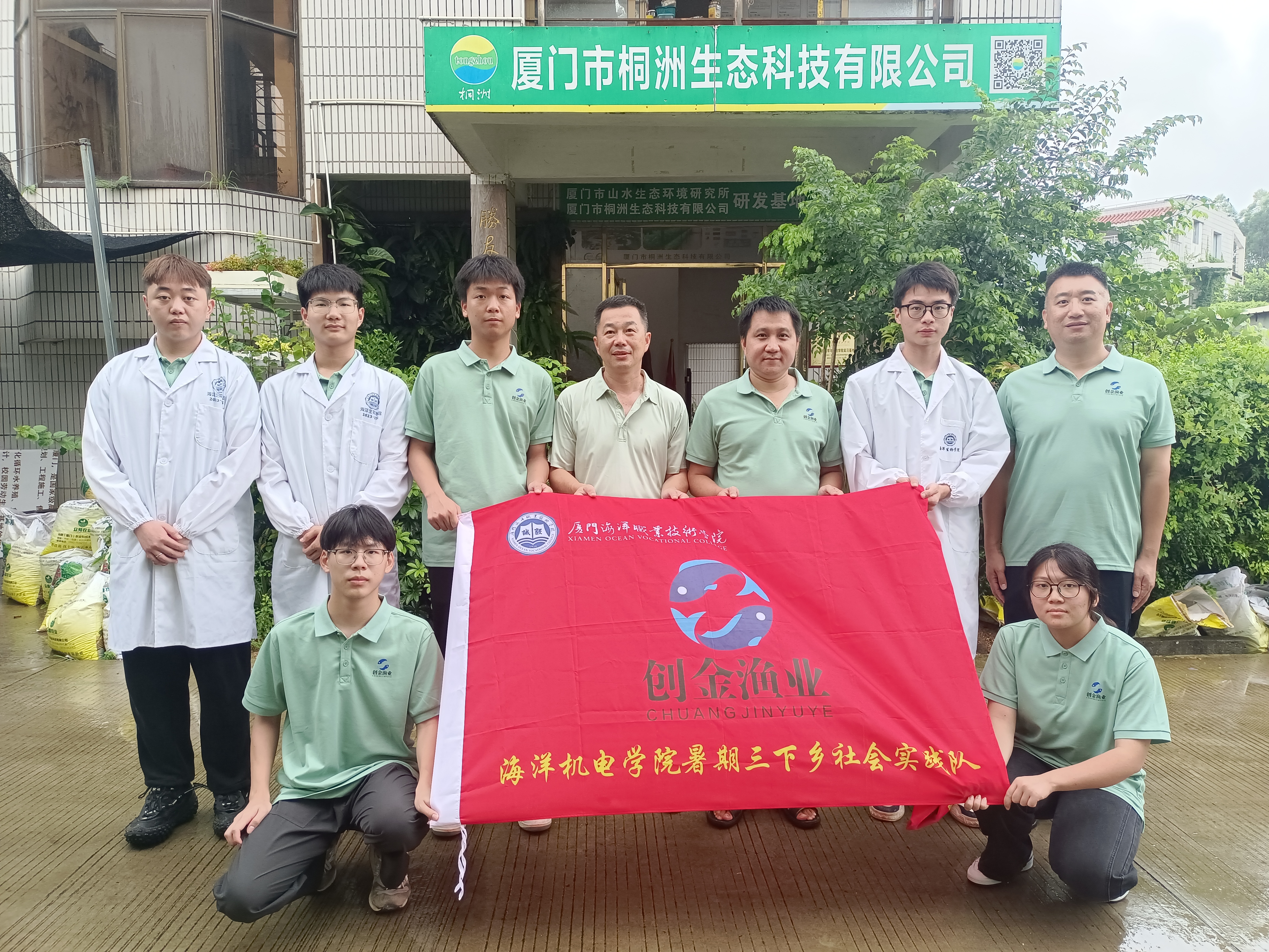 创金渔业技术服务队来到厦门桐洲生态科技有限公司,并与厦门桐洲生态科技有限公司携手合作,成功推动了鱼菜共生与水培菜技术的创新实践,共建大学生社会实践基地。这种合作模式不仅推动了绿色科技在农业领域的实际应用,还为大学生们提供了一个宝贵的实践学习和科研创新平台。通过这一平台,创金渔业技术服务队能够直接参与到生态农业的实践中,学习先进的农业技术,培养创新思维和实践技能。