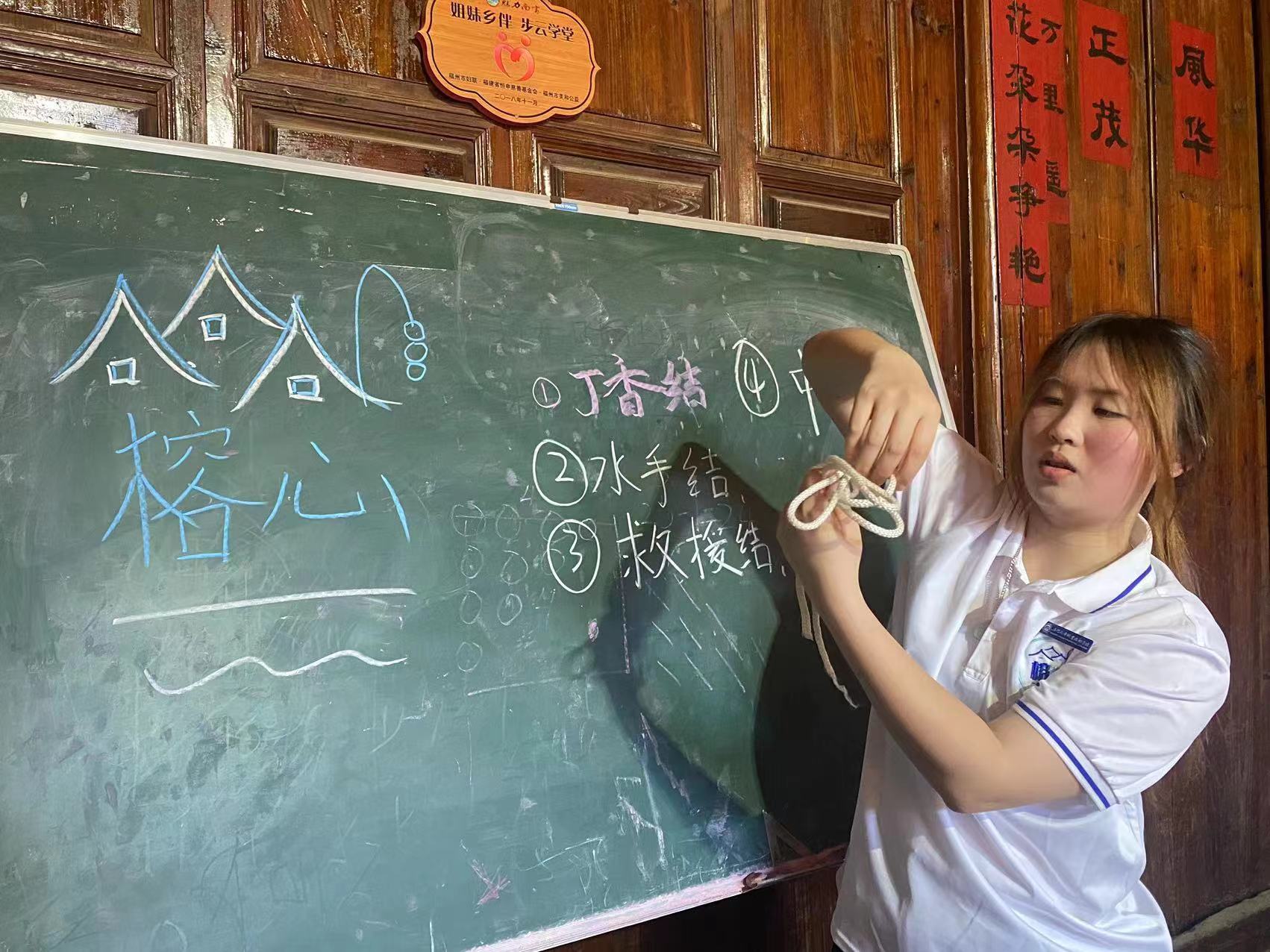在南宵村下和洋古民居群,实践队参访福建省首个农村古厝合作社运营的成果。古厝内建设的革命纪念馆、高由禧纪念馆、气象科普基地、乡村古厝图书馆、海丝纪念馆等,让实践队体验到“红色文化”“院士文化”“侨厝文化”“海丝文化”。在步云学堂,队员们向当地居民和儿童传授了海特色水手工艺——海丝结,将海上专业教学使用的绳结与非物质文化遗产中国绳结艺术相结合。