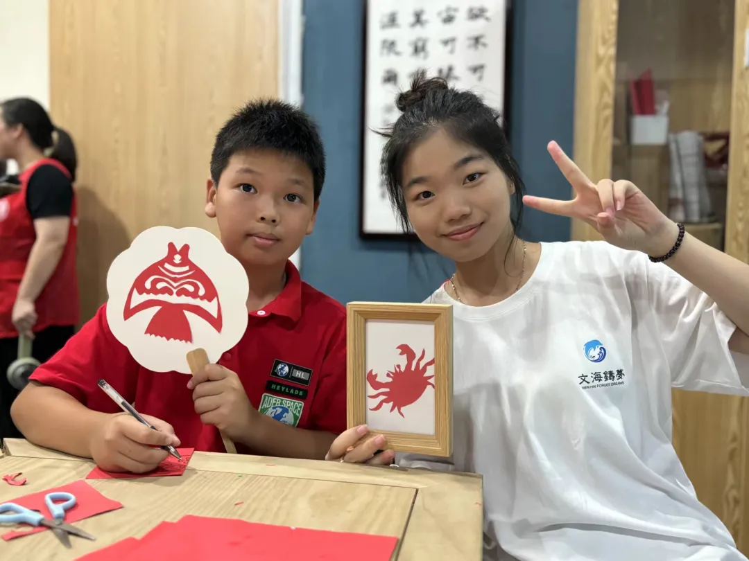 团队成员还带领小朋友体验了带有海洋元素的非遗剪纸艺术。此次寓教于乐的文化宣传活动为小朋友们搭建起了解、学习中华优秀传统文化的平台,加深了青少年对海洋生态文明思想的了解,展现了中华优秀传统文化与海洋文明交融共济的魅力。