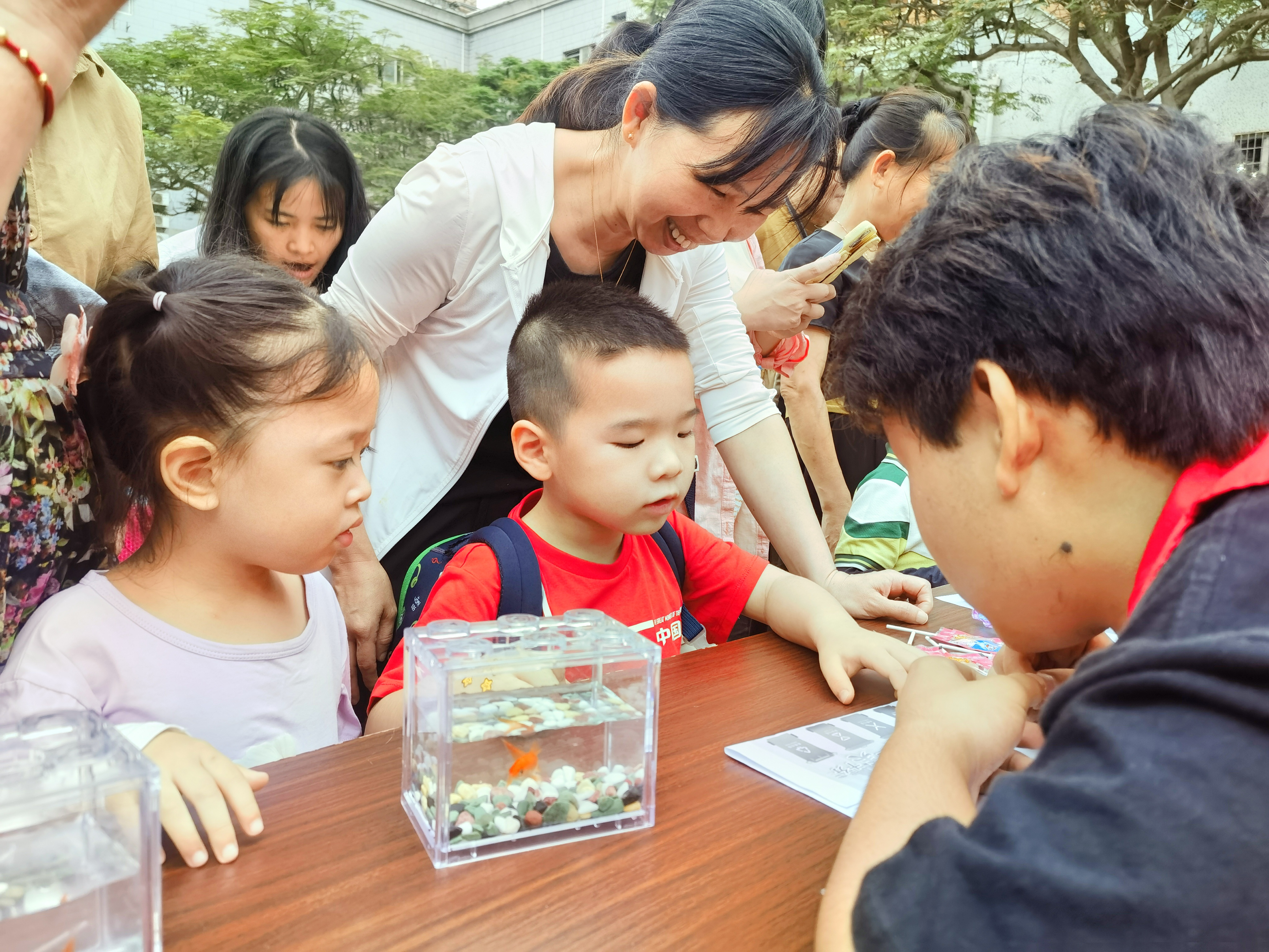 活动现场,家长们带着刚放学的孩子们来到展示位参与各类活动,包括看图识海洋生物、海洋生物连连看、垃圾分类问答……在家长的支持和志愿者的引导下,这场“大手拉小手”的海洋知识科普活动气氛活跃、欢笑不断。