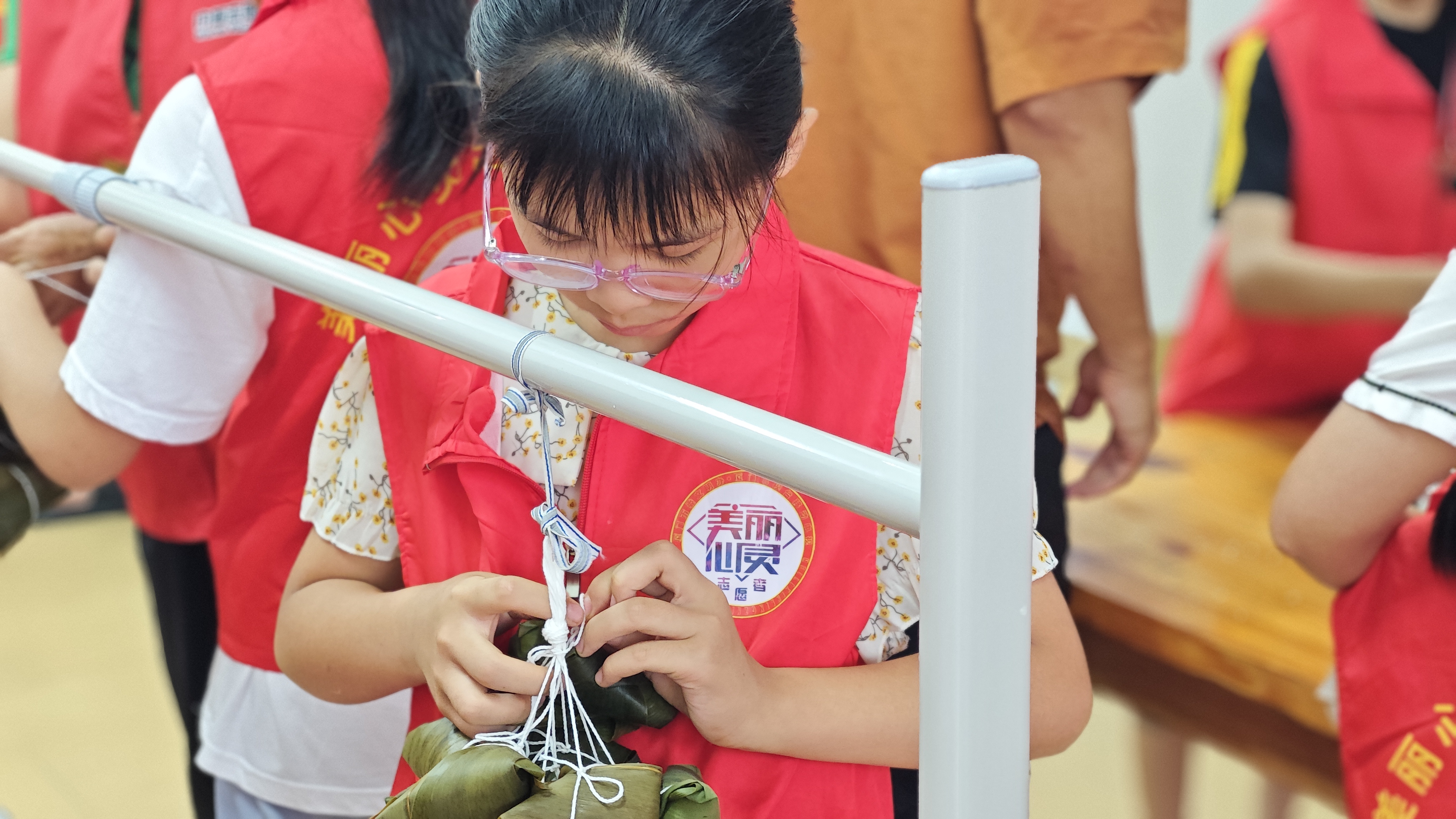 志愿者们先将粽叶洗净,在工作人员和志愿者的带领下,小朋友们将米、红枣、红豆依次放入粽叶中,包裹成三角状,并系上结,一个香甜可口的甜粽就包好了。包粽子,不仅是一种手艺的传承,更是一种情感的纽带。小朋友们围坐在一起,一边说笑,一边动手包粽子,其乐融融的氛围让人倍感温暖。每一个粽子都蕴含着我们对传统文化的敬意,以及对美好生活的期许。