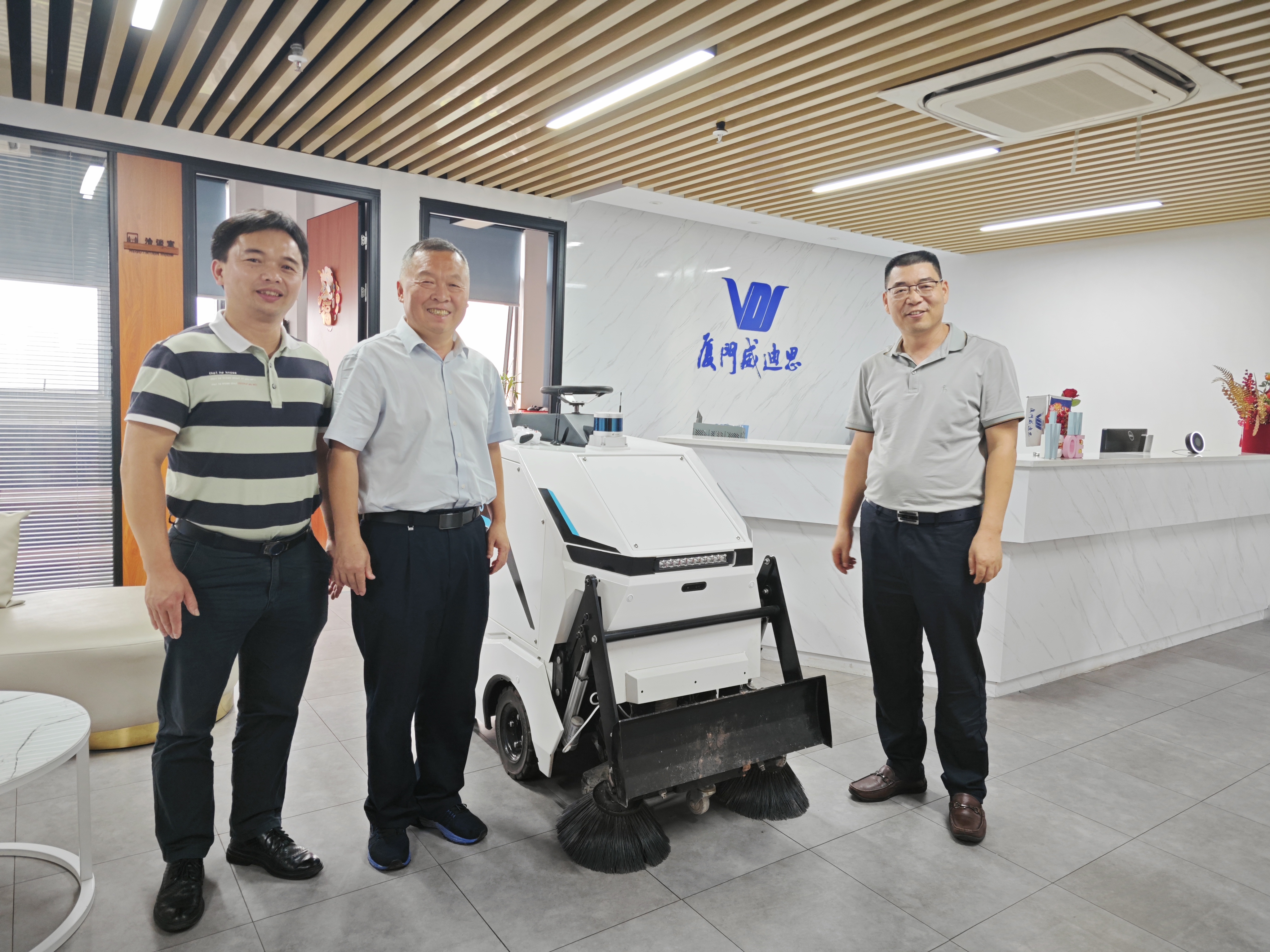 座谈结束后,韩锋钢带领王忠杰一行参观了厦门威迪思研发中心,观摩了智能移动底盘平台等创新产品,并表示期待我院的青年教师与厦门威迪思开展科研合作。