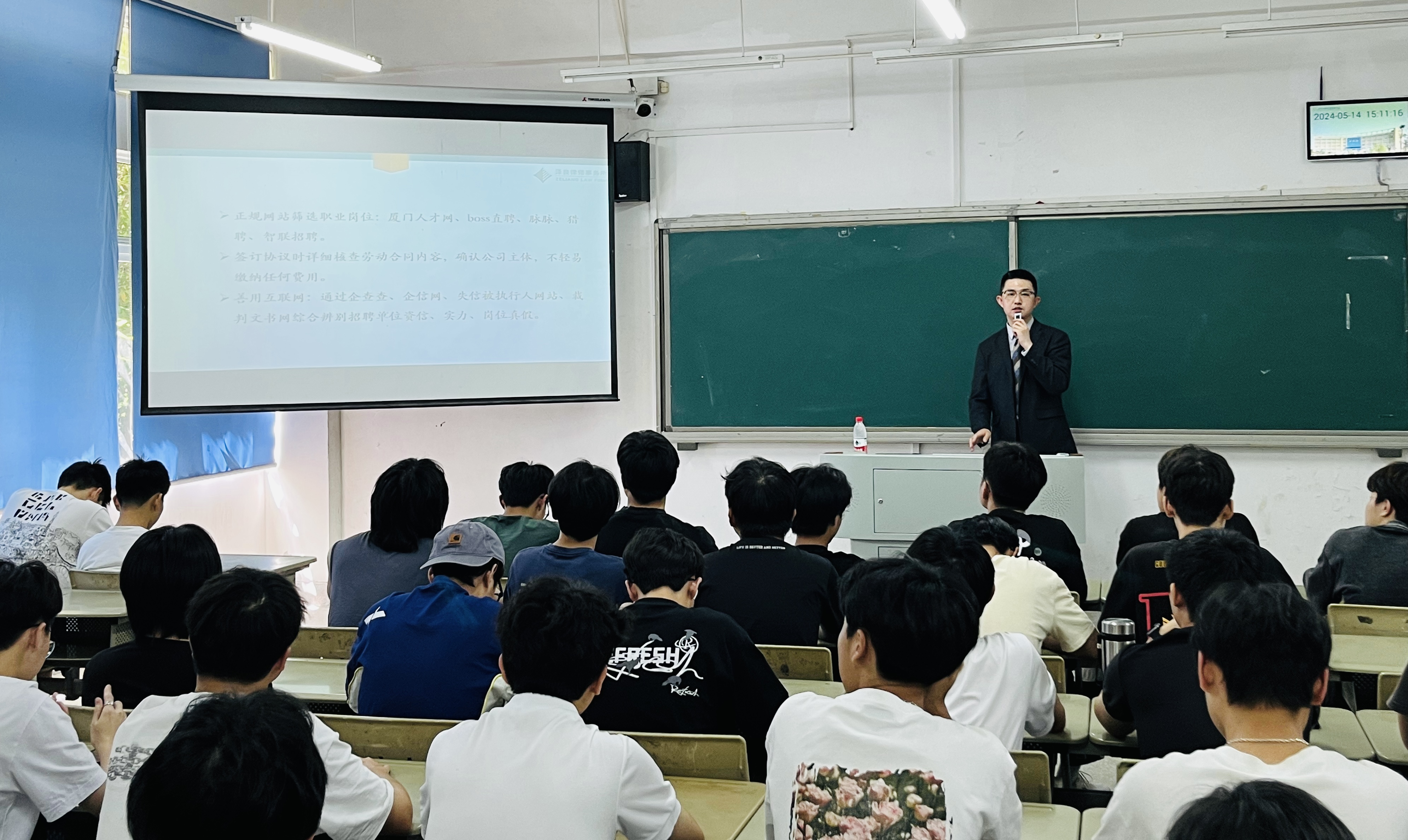 为深入贯彻落实党中央、国务院关于高校毕业生就业工作的决策部署,进一步加强对大学生的就业指导,提高大学生法律意识,保护自身合法劳动权益,5月14日下午,海洋机电学院“‘职’胜未来”辅导员工作室开展大学生求职就业法律知识讲座。本次讲座邀请到福建泽良律师事务所武海浪律师主讲,全校各学院80余人参与本次讲座。讲座由“‘职’胜未来”辅导员工作室负责人李志佳老师主持。