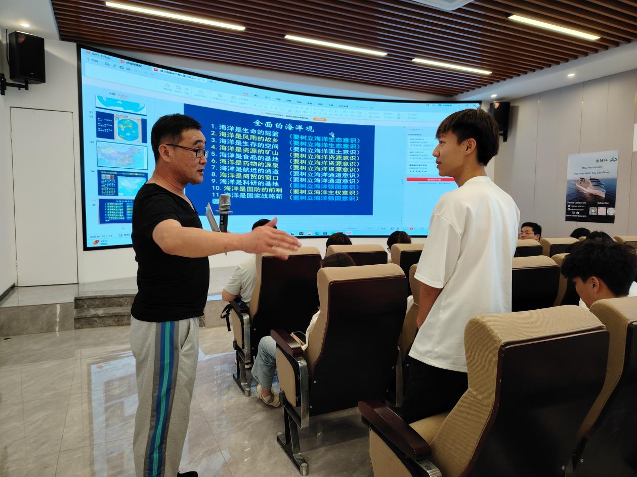 海洋生态文化节开幕式上,特别邀请了中国自然资源报首席研学、中国海洋学会研学工作委员会副秘书长邓飞帆作为主讲嘉宾。邓老师以《知海爱海亲海》为题,深入浅出地阐述了海洋的奥秘与美丽,以及海洋生态与人类生活的紧密联系。他以不同规格的中国地图为例,展示了中国海域的广阔与丰富,呼吁广大青少年深入了解海洋、热爱海洋、亲近海洋,增强海洋意识,积极投身于海洋的保护和合理开发利用。讲座中,邓老师与师生们进行了积极的互动。他通过提问、解答、分享等方式,激发了师生们对海洋生态的浓厚兴趣。现场气氛热烈,师生们纷纷表示,通过邓老师的讲解,他们更加深刻地认识到了海洋生态的重要性,也更加坚定了保护海洋生态的决心。
