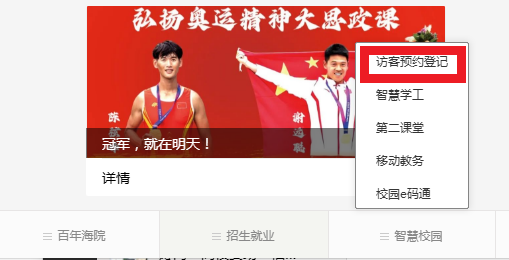 预约方式:关注“厦门海洋职业技术学院”微信公众号,右下方“智慧校园”进入访客预约系统填写预约信息,其中被访人姓名:白龙骧。