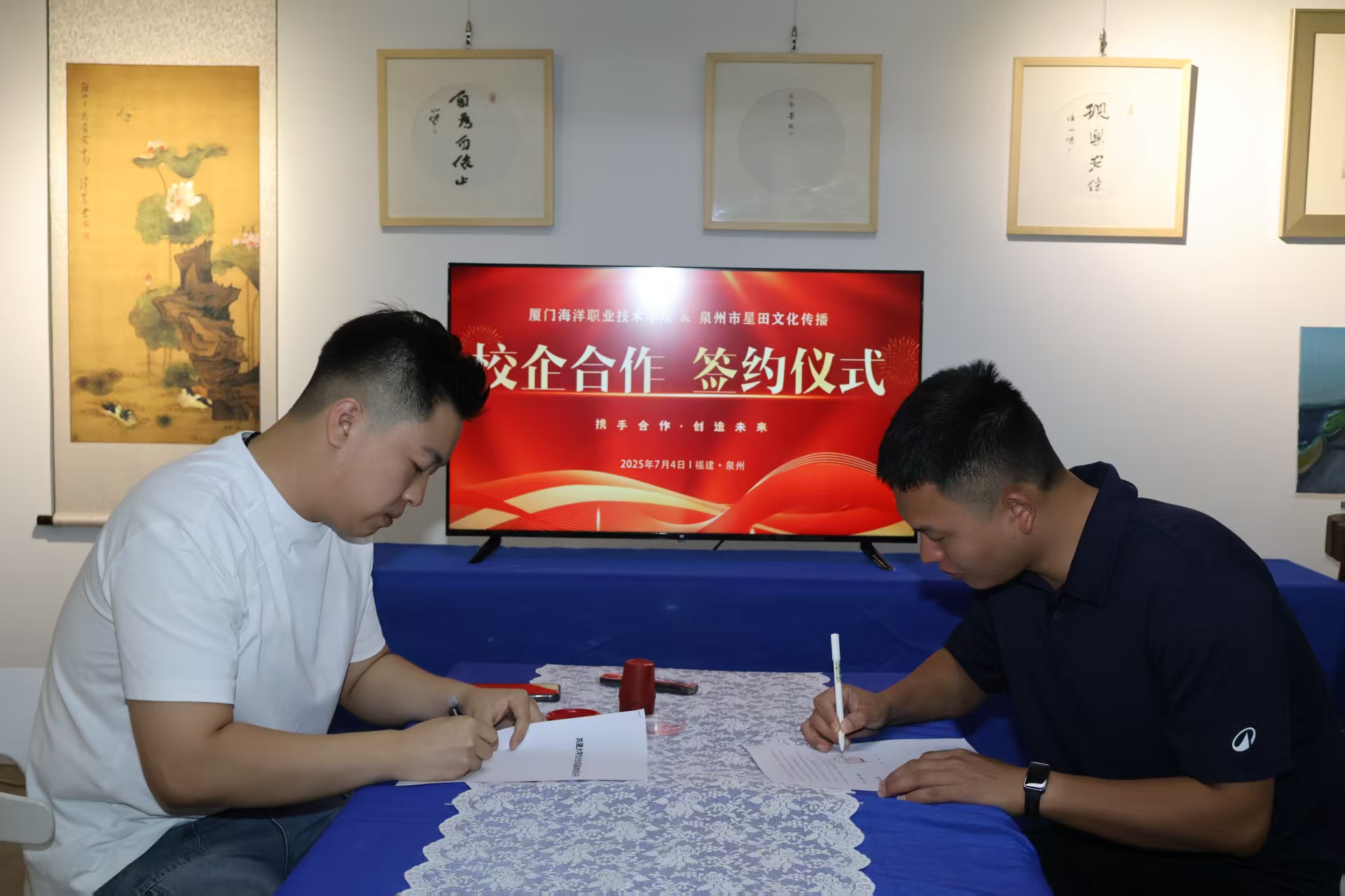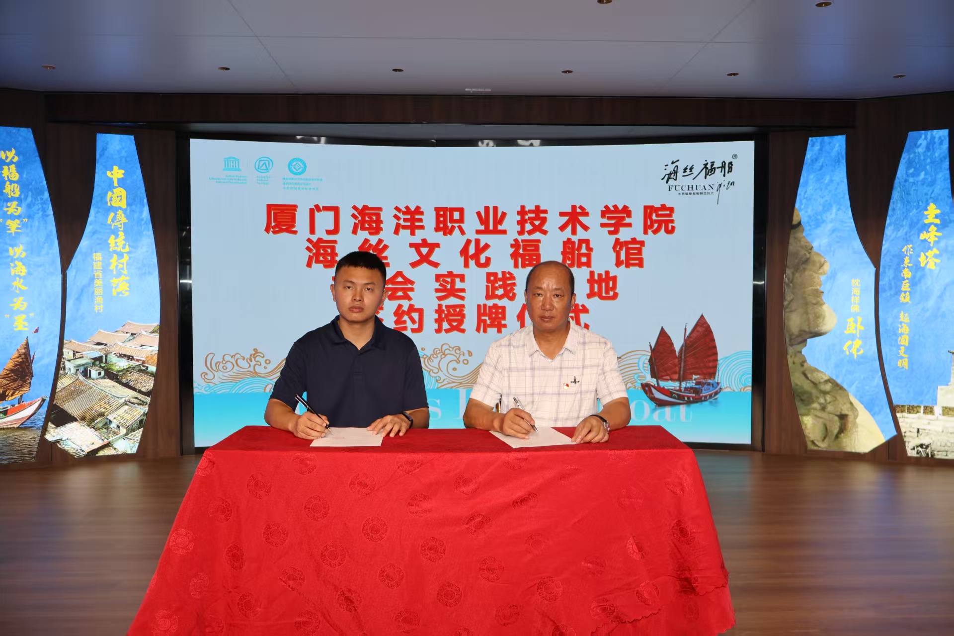 7月4日-5日,在调研基础上实践队积极推进技艺复原与共建合作,实践队先后与泉州福船古船模制作有限公司、泉州市星田文化传播有限公司签署社会实践基地共建协议,探讨造船技艺的保护与传承创新。同时,实践队前往泉州海外交通史博物馆,进行参观学习,并通过线上、线下结合的形式先后与“上海中国航海博物馆”“泉州海外交通史博物馆”开展了2次古船技艺与文化传承研究交流会。