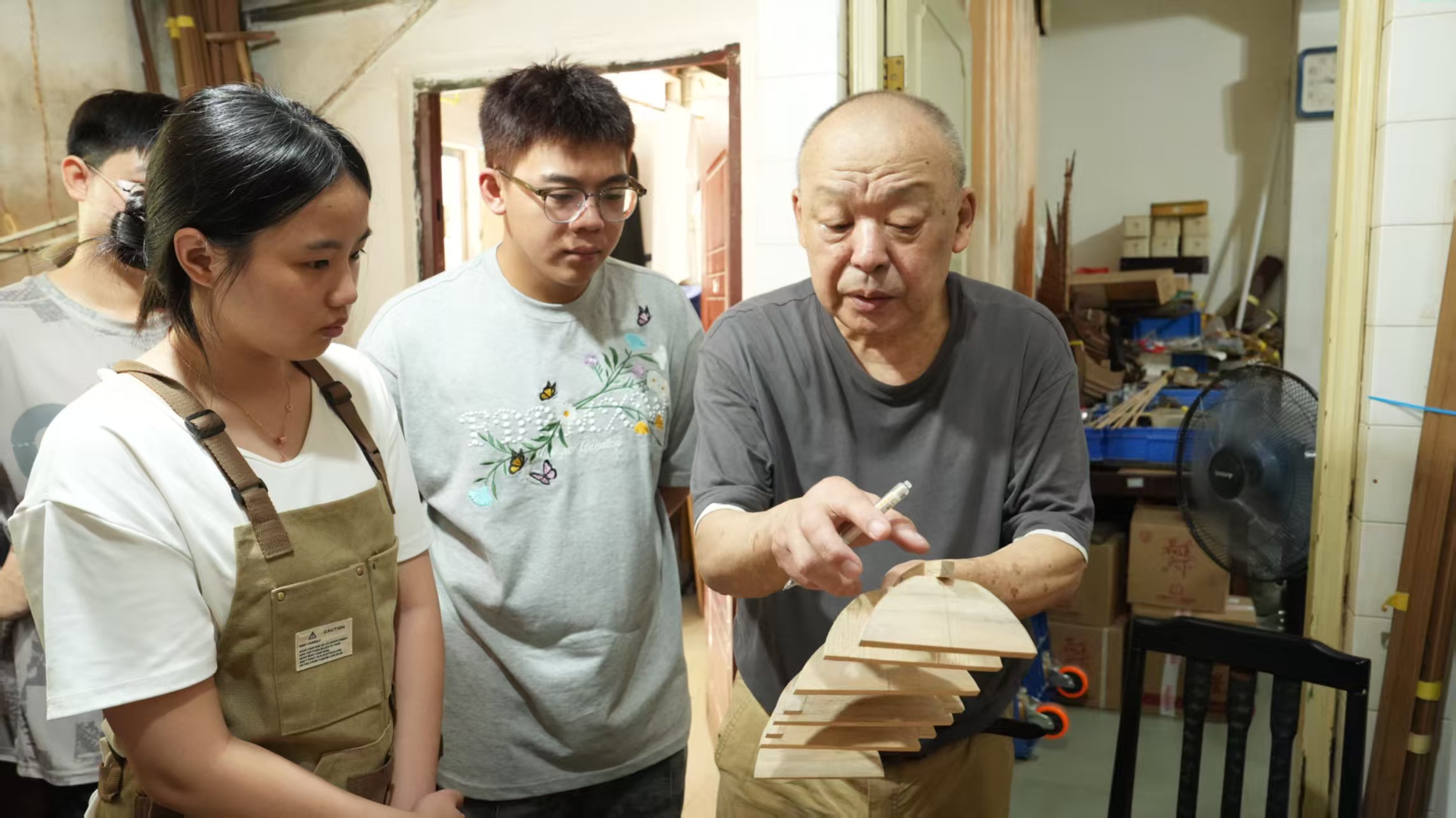 5月-6月的前期筹备阶段,实践队先后调研厦门沙坡尾造船厂遗址、厦门文化馆市非遗中心、厦门教师进修学校第二附属小学等地,与许路、郑水土等专家及非遗代表性传承人深入交流,累计完成10余场口述史访谈,采集录音资料超过20小时,数字化古籍文献2册,开展“船模小课堂”试点教学,开发2节小学课程资料,完成4张动手实践的古法薯莨染帆布料。
