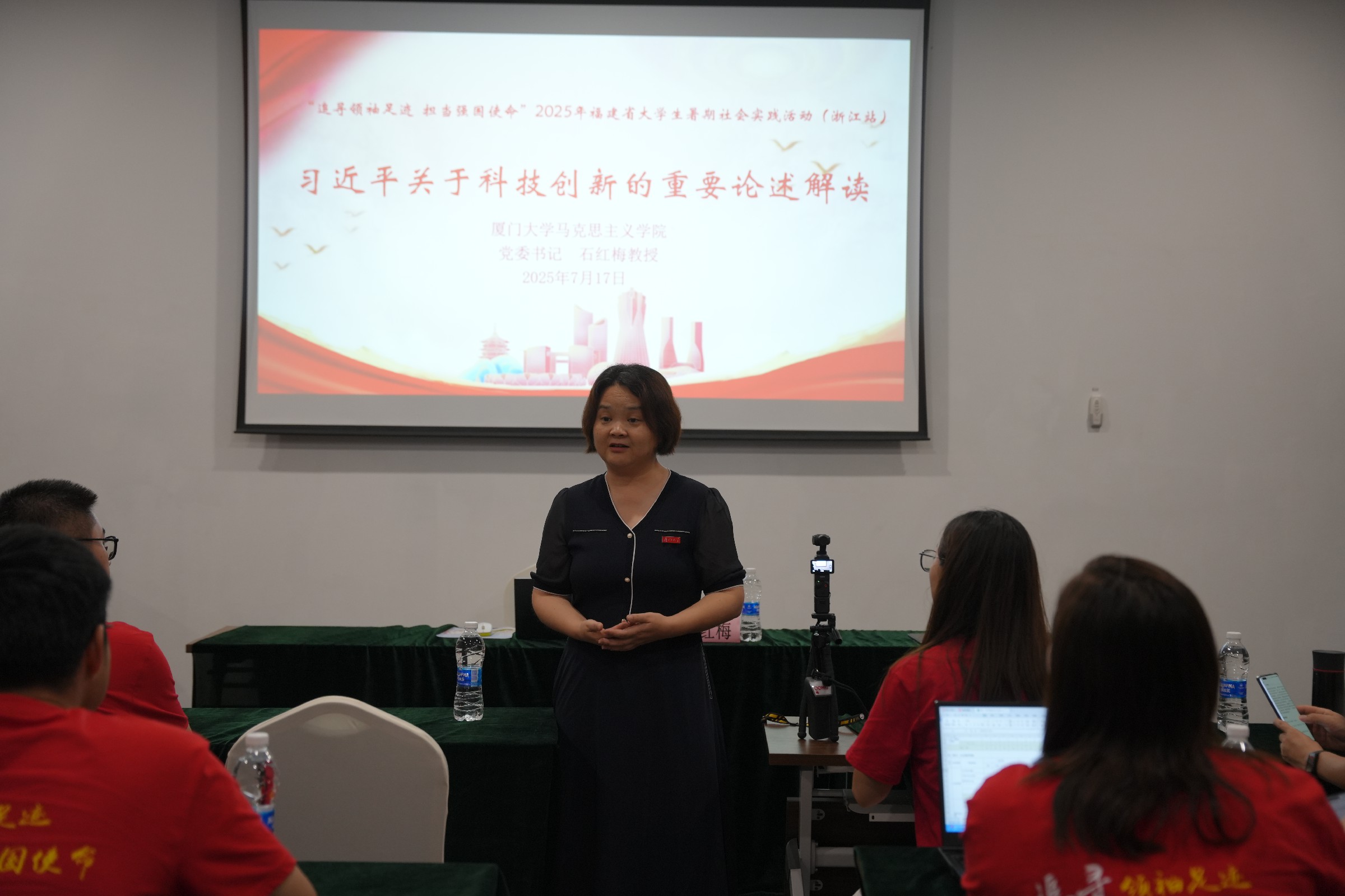 人才是教育和科技发展的关键智力资源。厦门大学马克思主义学院党委书记石红梅教授为实践队师生讲授题为《习近平关于科技创新的重要论述解读》的思政课。