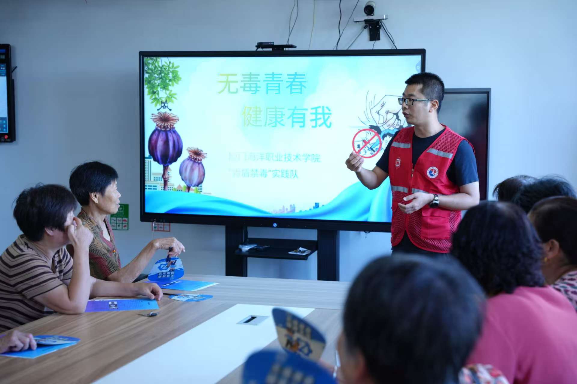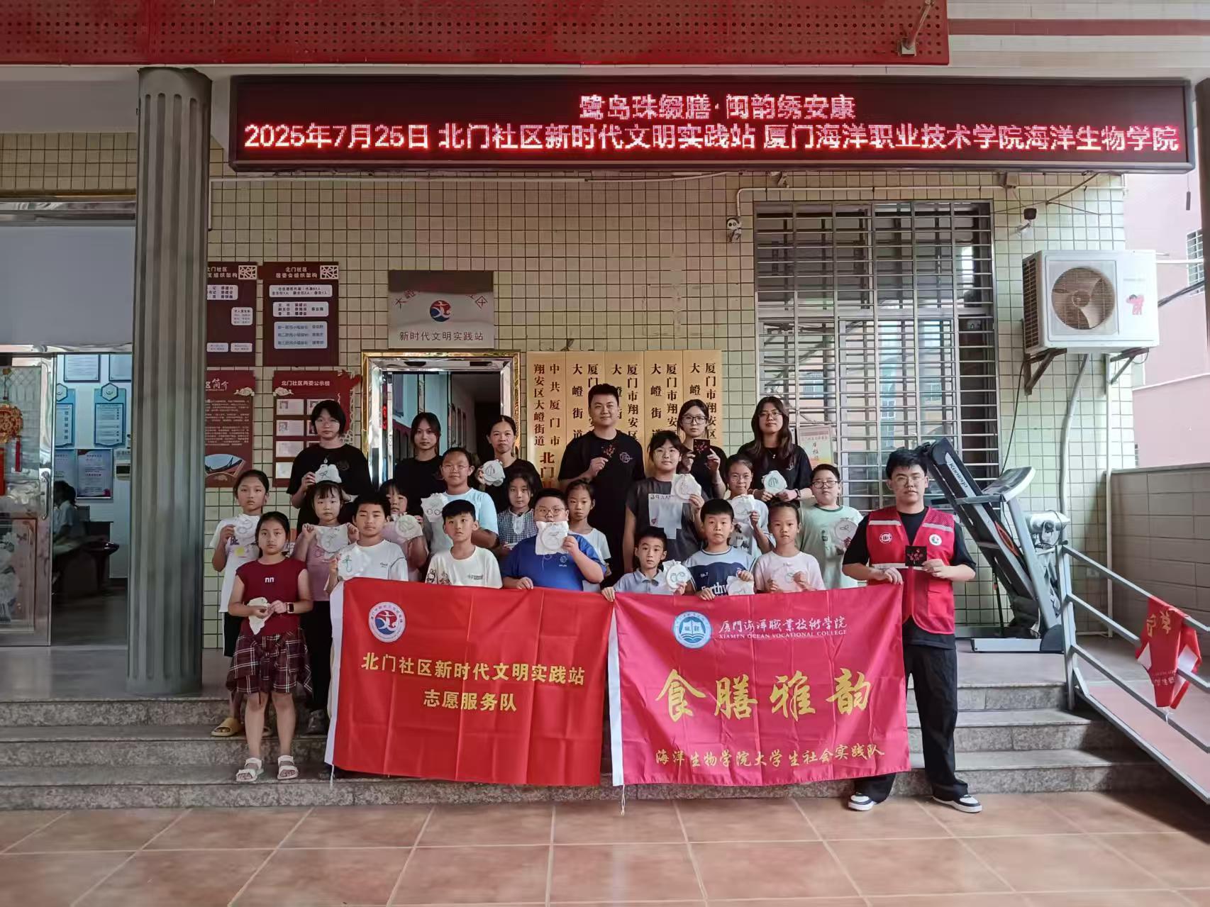 国际商贸学院“御风而行,共赴山海”社会实践队在东埕社区,“风狮领航”把风狮爷信仰、古船木作技艺搬进直播间、文创店;海洋生物学院“食膳雅韵”社会实践队在北门社区,“闽韵绣安康”把闽南古早味、中医膳食文化做成“舌尖上的文明”;海洋工程学院“青盾禁毒”社会实践队和国际商贸学院“无毒行者”社会实践队在阳塘、双沪社区新时代文明实践站分龄化禁毒游园会则让游戏闯关与科普讲堂精准触达不同人群,传统文化与基层治理同生共长。