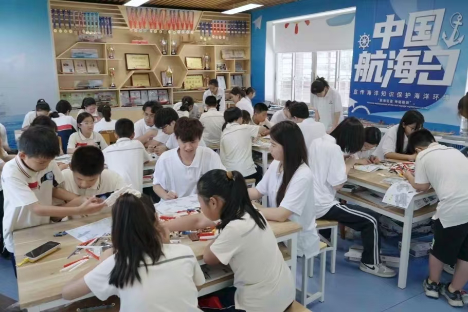 航海学院“海防戍边”社会实践队在小嶝社区“海岛支教服务站”常态化开课:海防知识、绳结旗语、潮间带科考、红树林守护……一门门特色课程弥补海岛教育短板;公共教育学院“逐海图强”社会实践队携手港澳台青年,把“海洋文化进校园”开进大嶝中心小学,大手牵小手,同上一堂国情教育课。