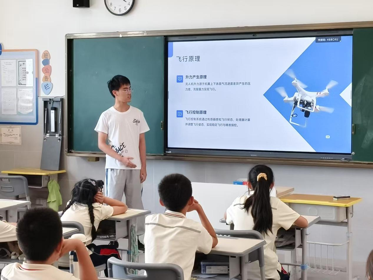 海洋工程学院“海工飞翼”实践队走进翔安区大嶝阳塘小学,开展“科技赋能社区,无人机科普惠民”主题实践活动。团队充分发挥专业特色,以无人机技术为载体,结合海洋科技应用实例,开展无人机科普,实物展示、原理讲解、飞行演示、海上救援应用介绍,为学生们带来集知识性、趣味性于一体的科普体验;信息工程学院“对话青春”社会实践队在小嶝社区“光电启智”小课堂上,激光折射、太阳能小车让“高深”科技秒变“触手可玩”,孩子们争相举手“再来一次”。