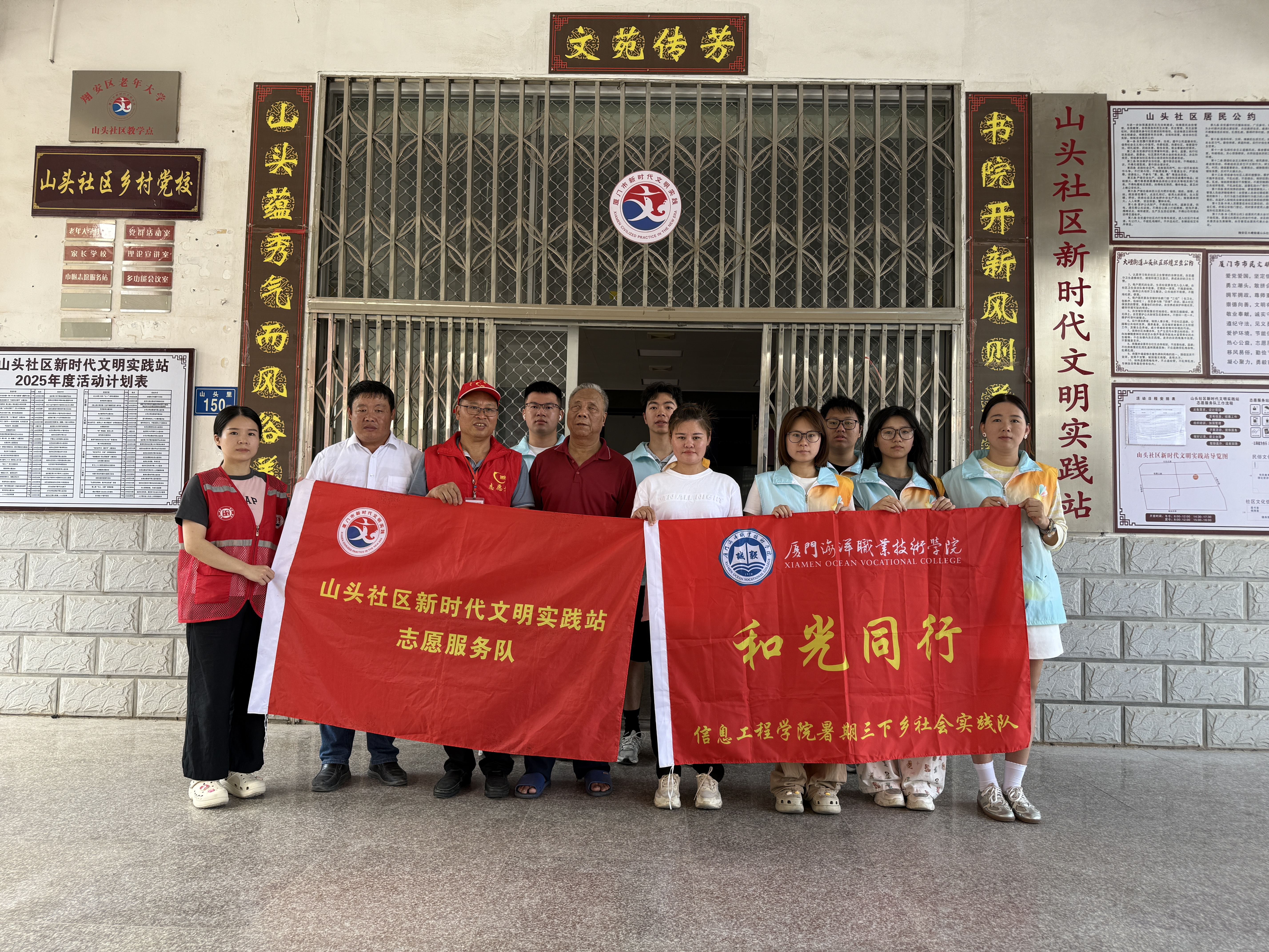 实践队在山头社区新时代文明实践站与翔安区残联志愿者合影