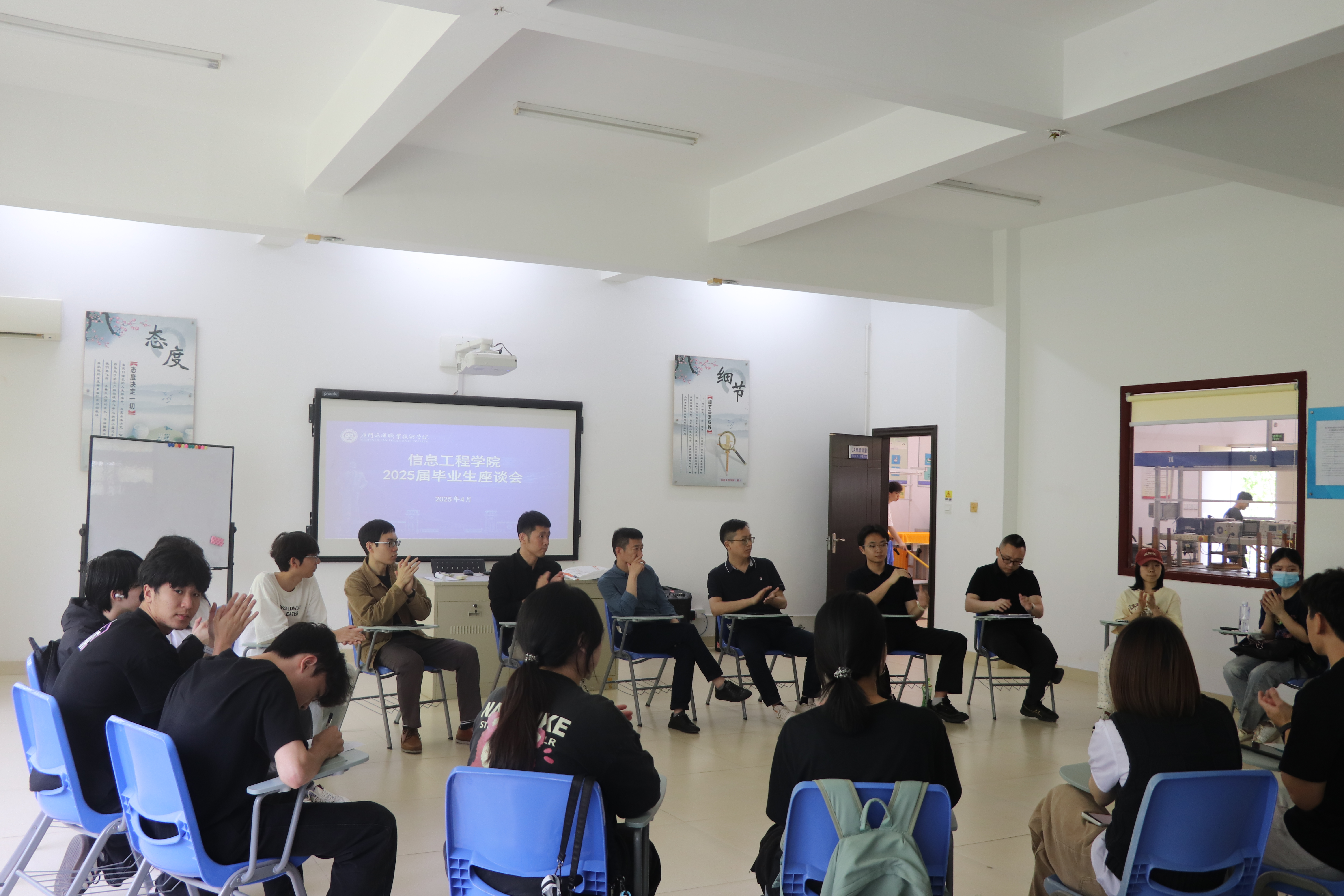 信息工程学院党政领导、辅导员与25届学生代表围成一圈,促膝长谈。同学们畅谈工作经历和求职困惑,老师们仔细倾听、耐心解答疑惑,师生一同谋“就业”。