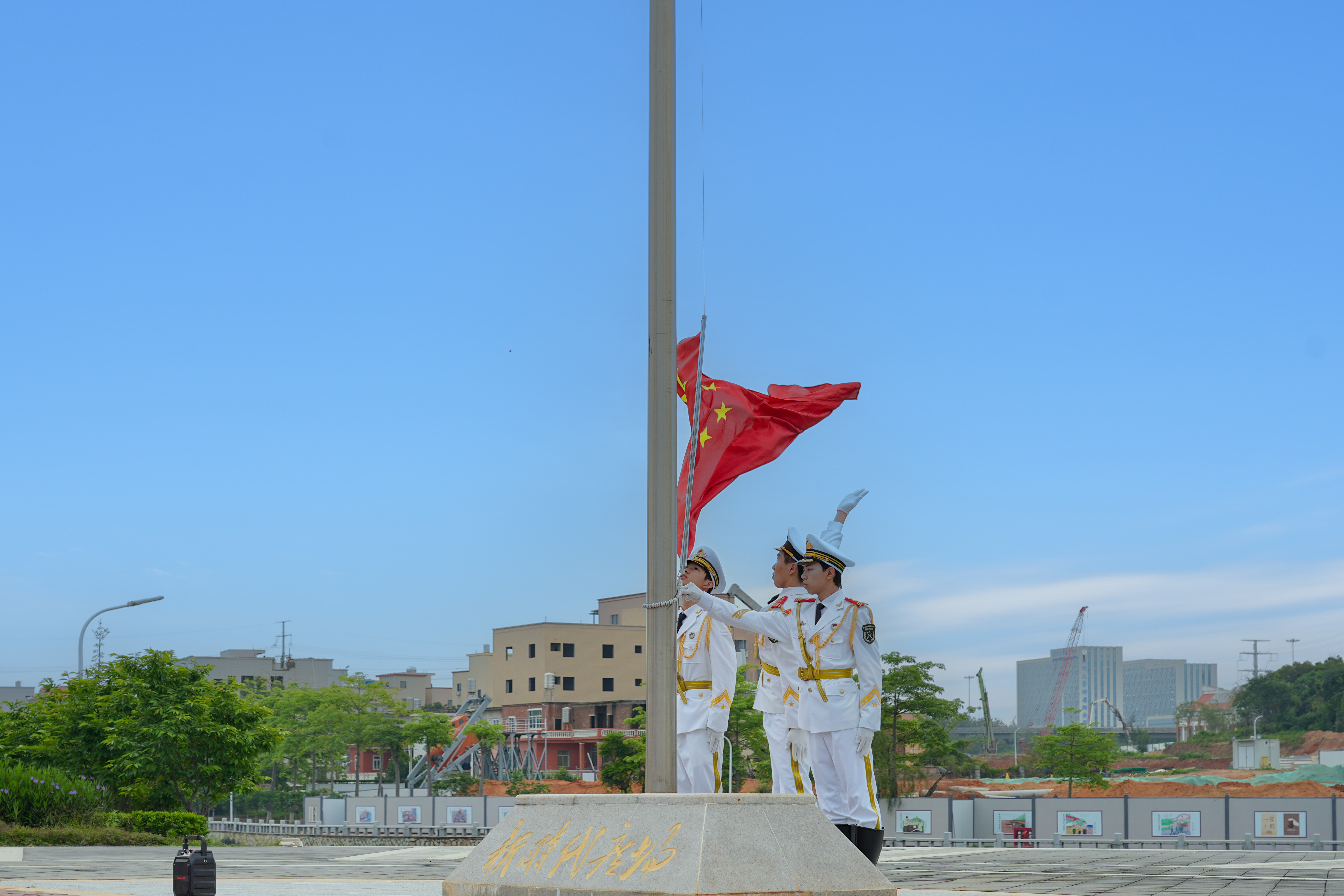 在校国旗护卫队的护卫下,伴随着庄严肃穆的国歌,五星红旗冉冉升起。