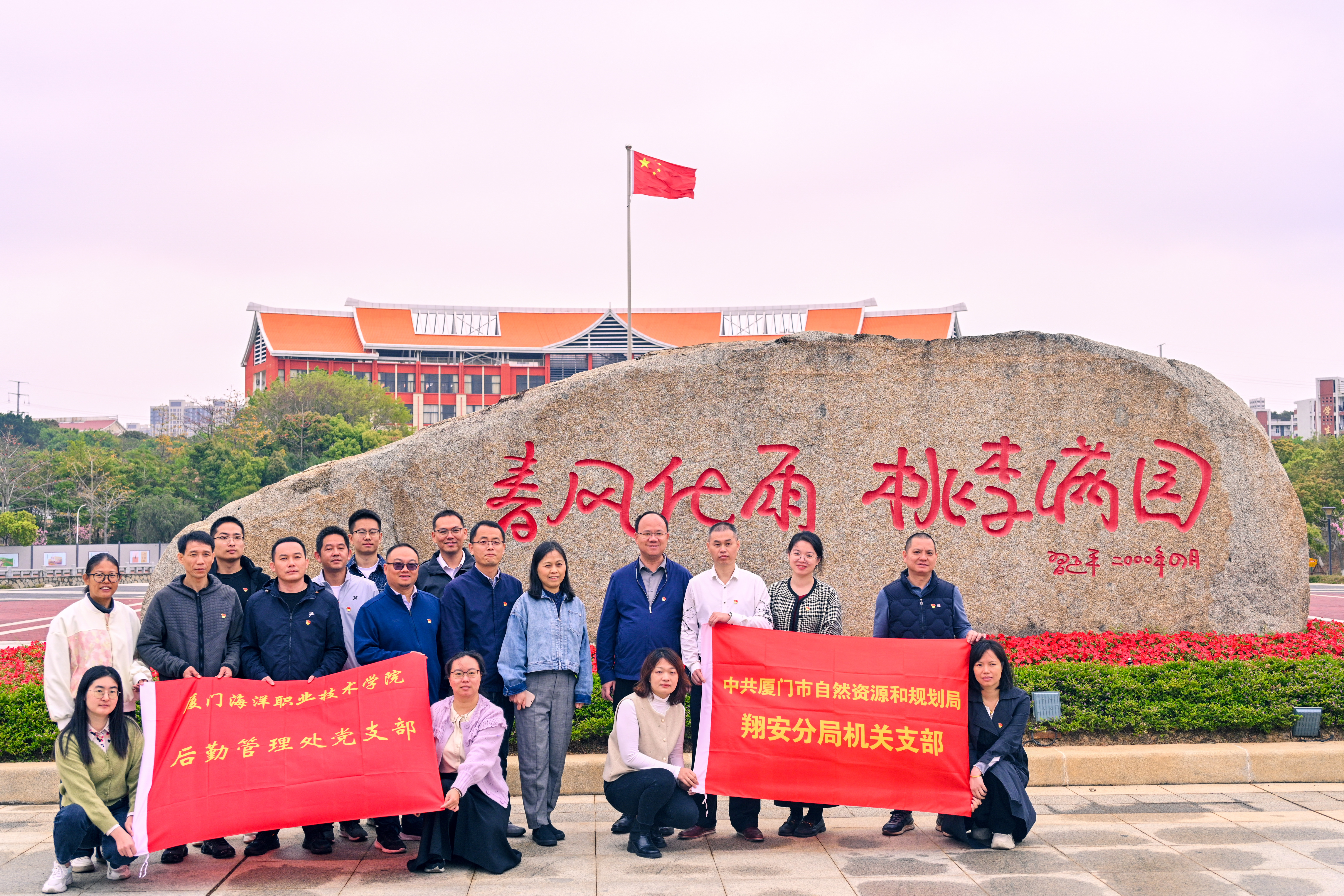 3月28日,厦门市自然资源和规划局(下文简称“资规局”)翔安分局党支部书记、副局长杨晨宇,副局长江钦智带队到我校翔安校区开展党建共建活动,与后勤管理处党支部进行工作交流。活动期间,厦门市自然资源和规划局来访人员实地调研了我校在建项目规划情况,并先后参观了校主纪念馆(校史展览馆)、世界船模文化展览馆和珍稀海洋生物繁育研究中心等特色场馆。