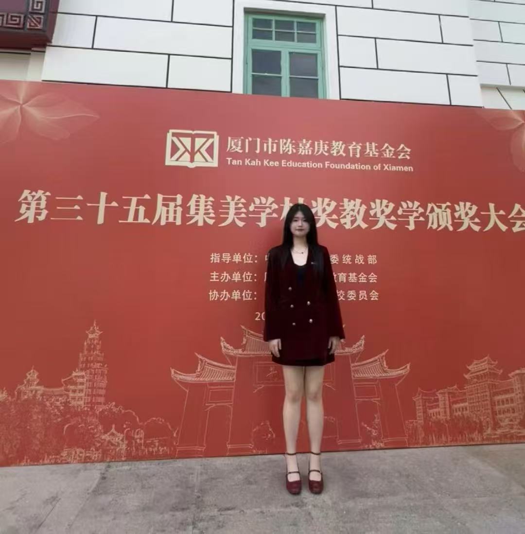 自入学以来,她始终以奋斗为底色,在学习、工作、竞赛与实践的多维赛道上全面发力、持续精进。先后斩获2025年福建省大学生创新大赛金奖、2025年福建省职业院校技能大赛“智慧金融”赛项二等奖、第十一届海峡两岸暨港澳大学生职业技能(能力)大赛“期货投资模拟交易”赛项二等奖等省市级荣誉;大二学年综测排名居专业第一;获评厦门市陈嘉庚教育基金会奖学金、校优秀学生一等奖学金、校“优秀学生干部”“优秀共青团员”等称号;并参与多项社会实践与志愿服务,以实际行动践行青春担当。