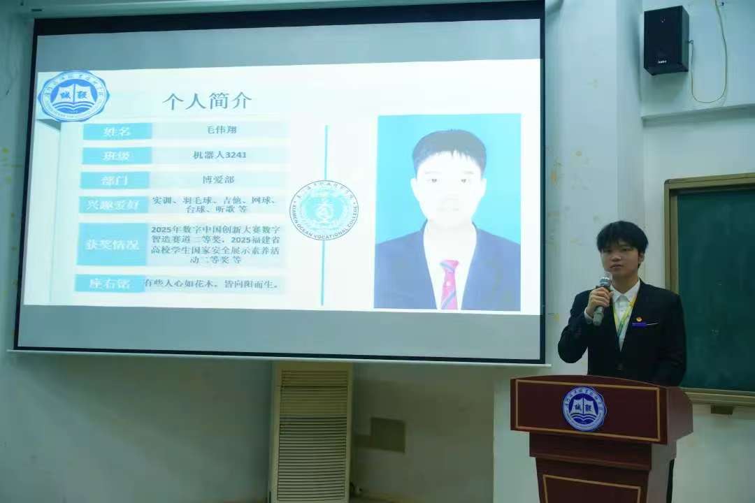 毛伟翔,男,共青团员(入党积极分子),海洋机电学院工业机器人技术专业2024级学生,荣获2025年国家奖学金。