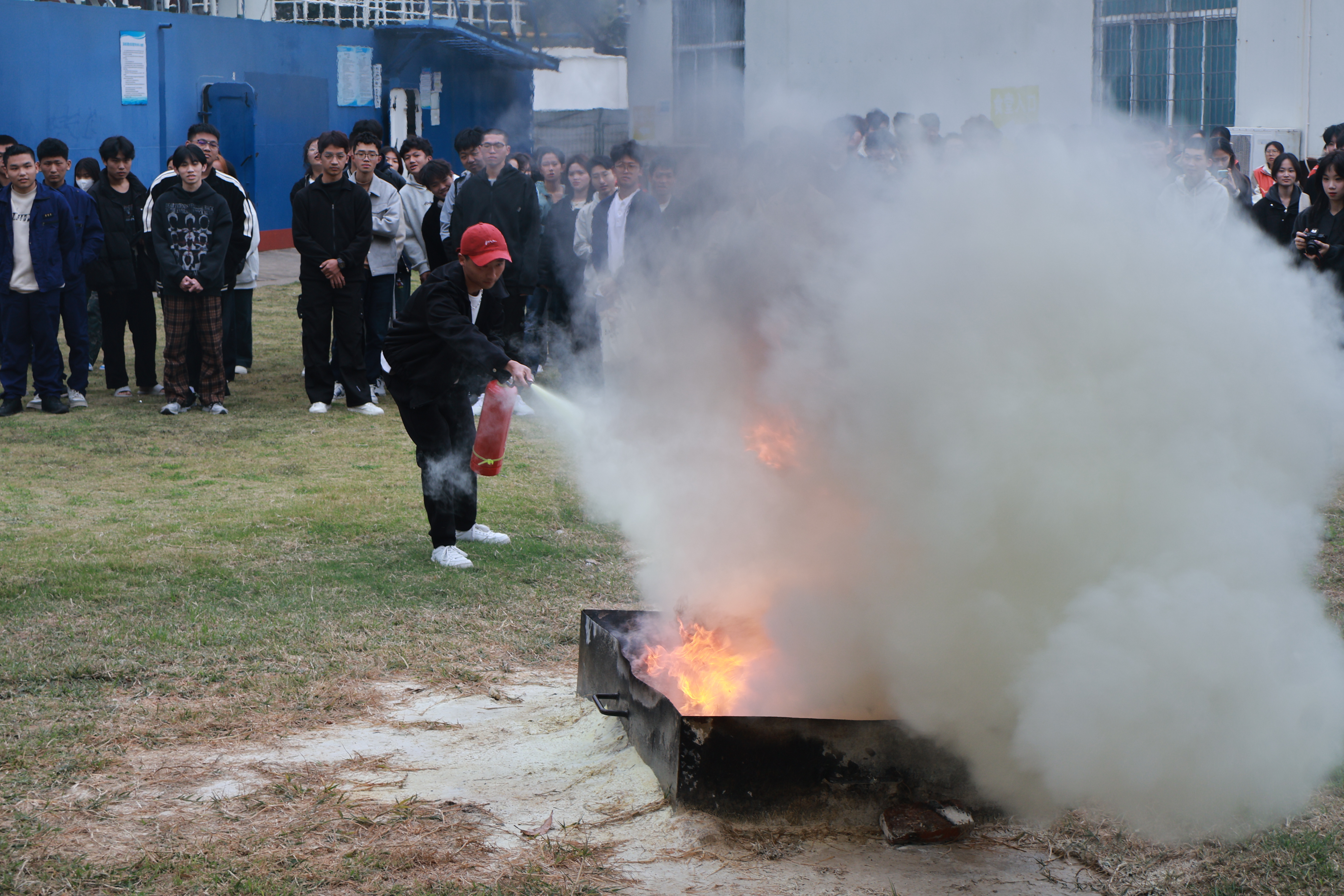 思明区消防宣传林晓芊教官为同学们详细讲解了各种灭火器的正确用法、注意事项以及防毒面罩的使用,各班安全员也积极尝试,参与实操演练,努力提升自救与组织互救的能力。