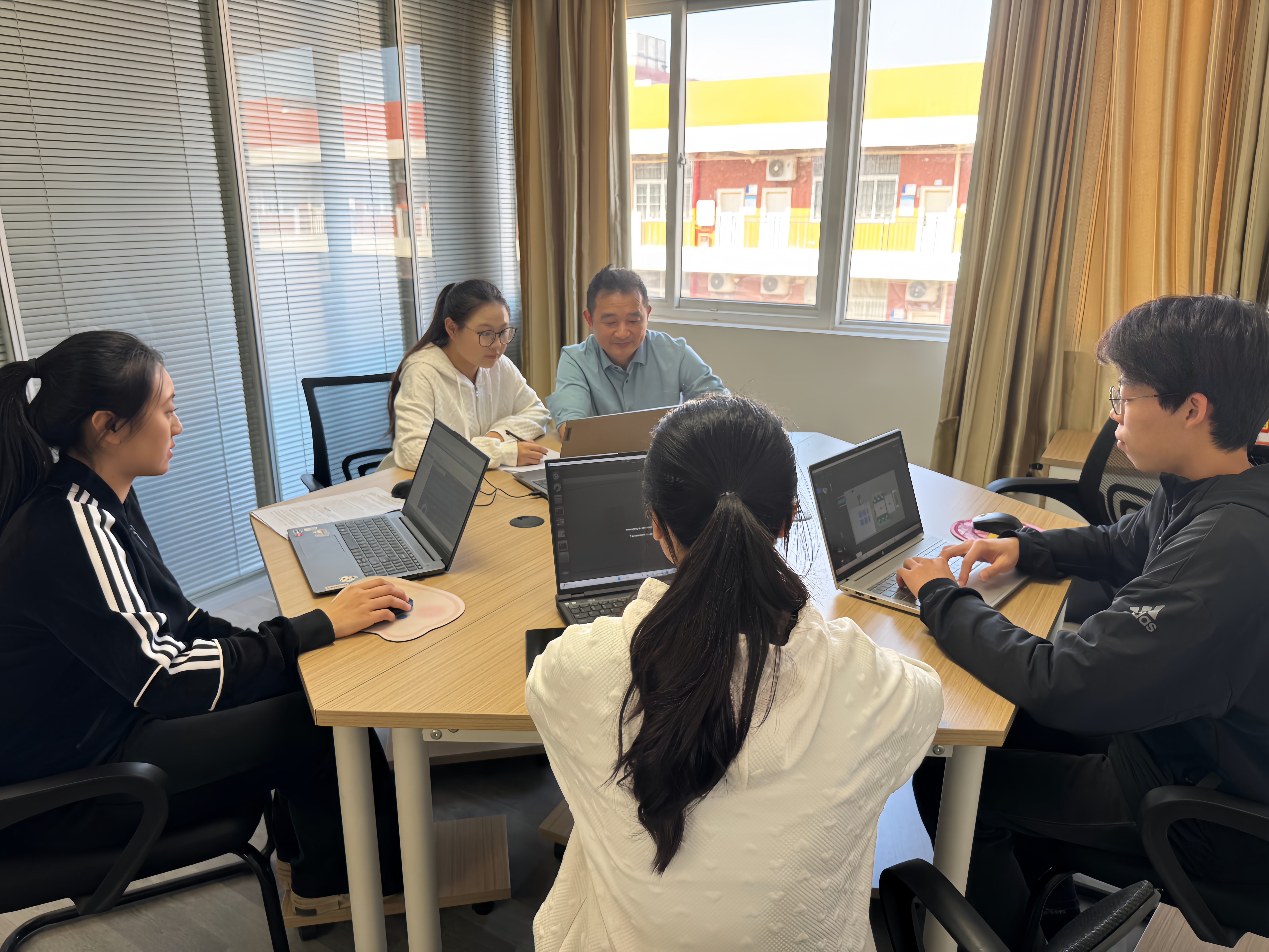 与团队成员讨论、完善方案备战技能比赛(左上一)