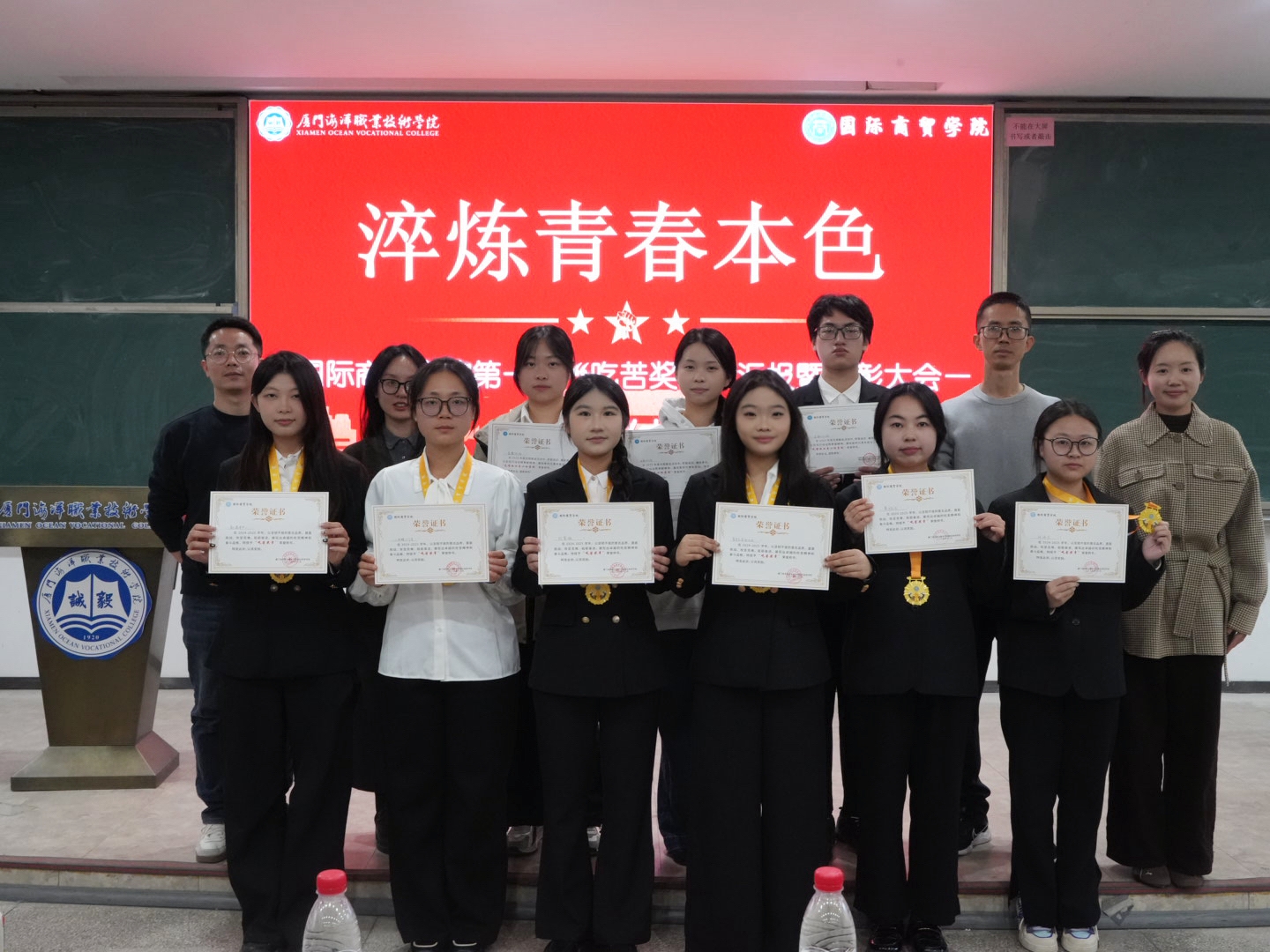 获得国际商贸学院第一届“吃苦奖章”(一排右一)