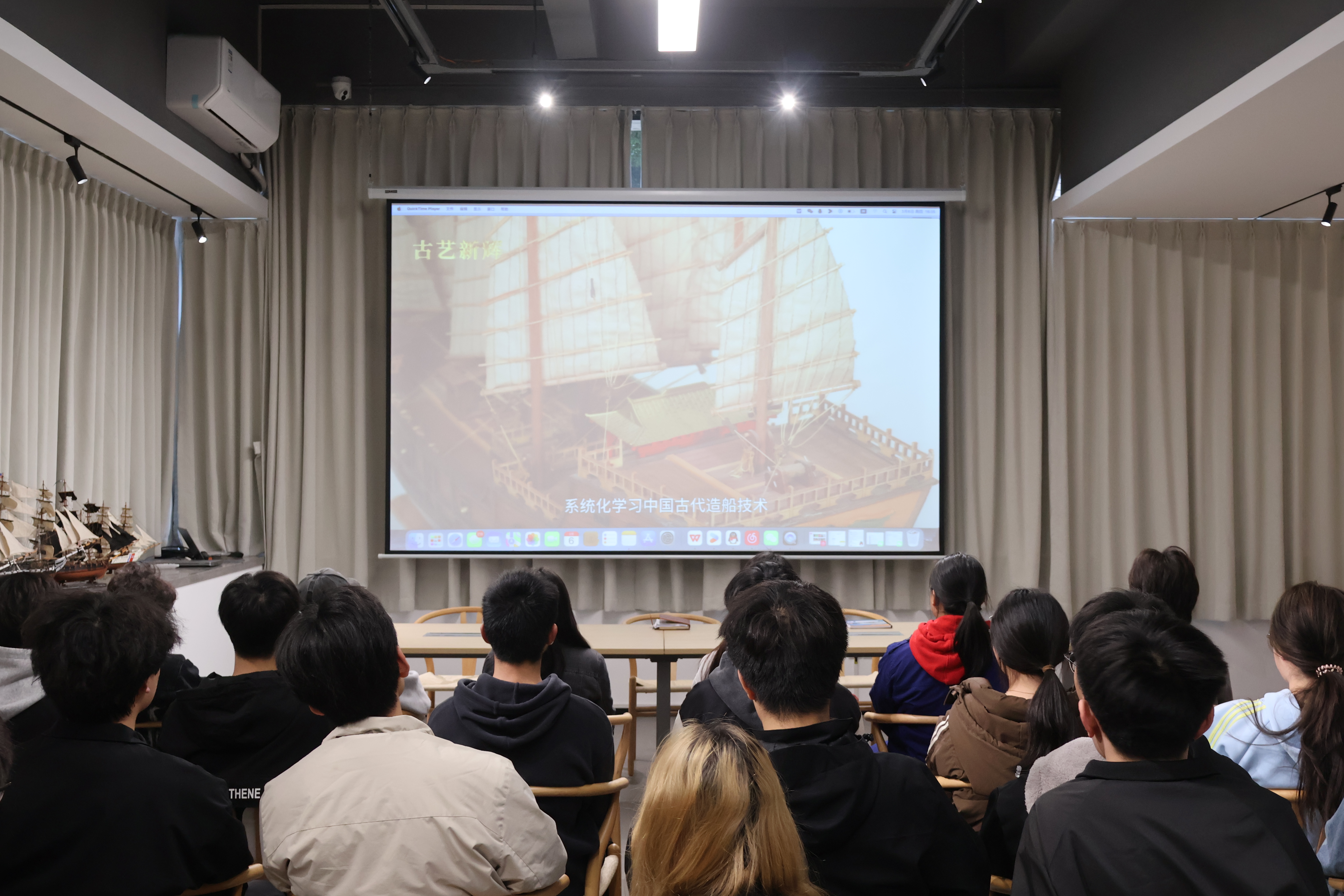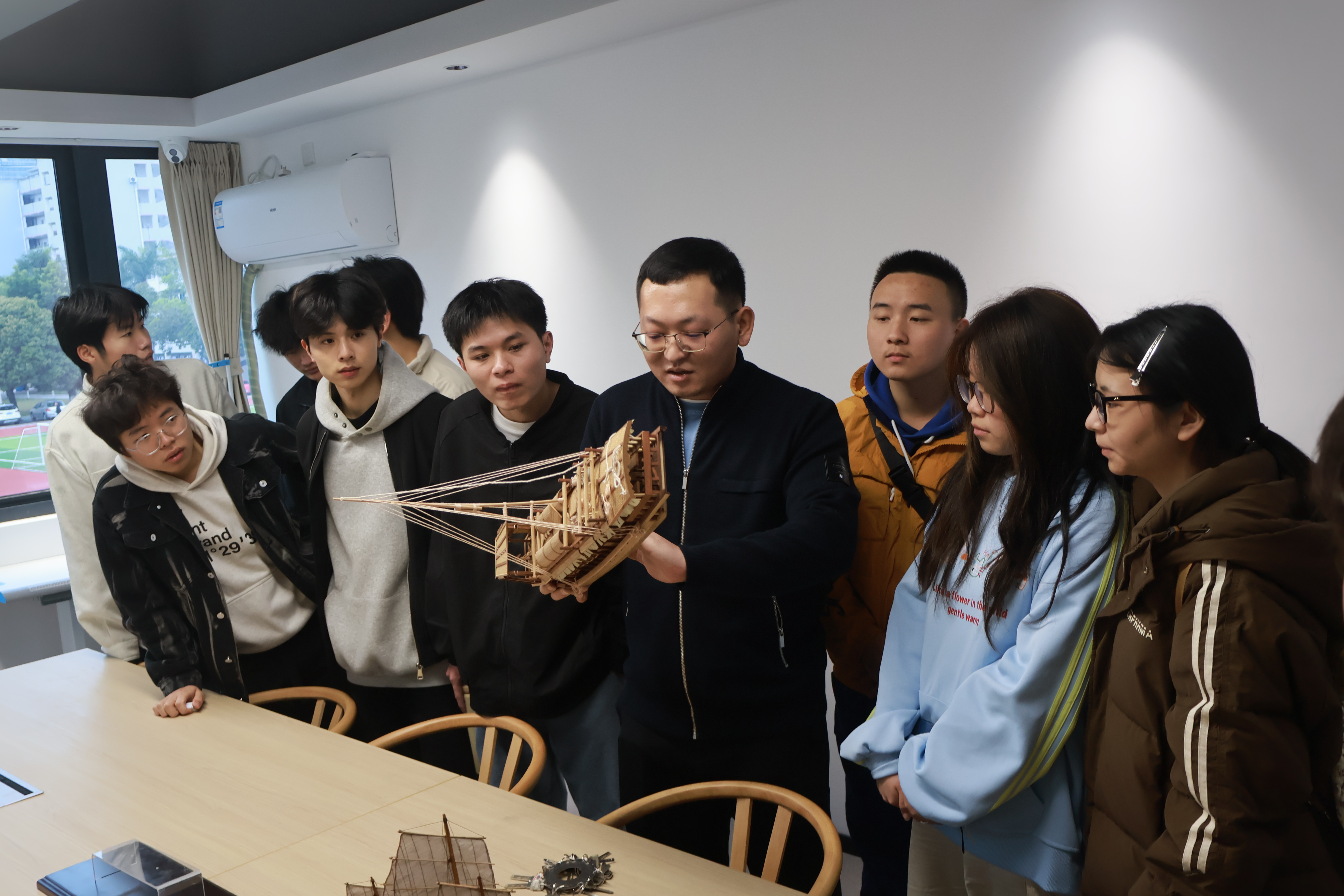 仪式后,学员们自由参观了船模大师工作室,并与船模制作导师进行了深入交流。船模创新班是航海学院在中国古船模人才培养与文化传承方面的重要创新举措,通过系统的理论课程与实践操作,培养一批热爱航海文化、掌握精湛技艺的传承人,让这份古老的“手艺”在新时代重新焕发生机。