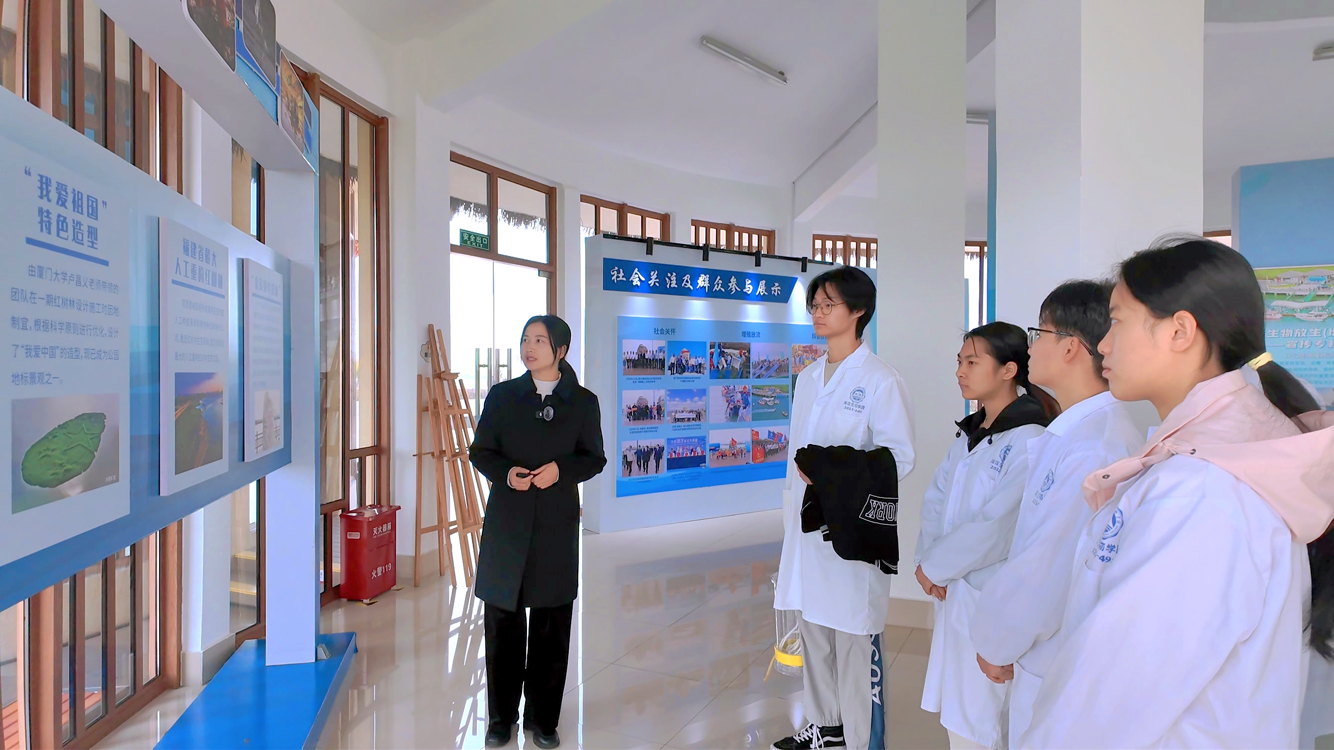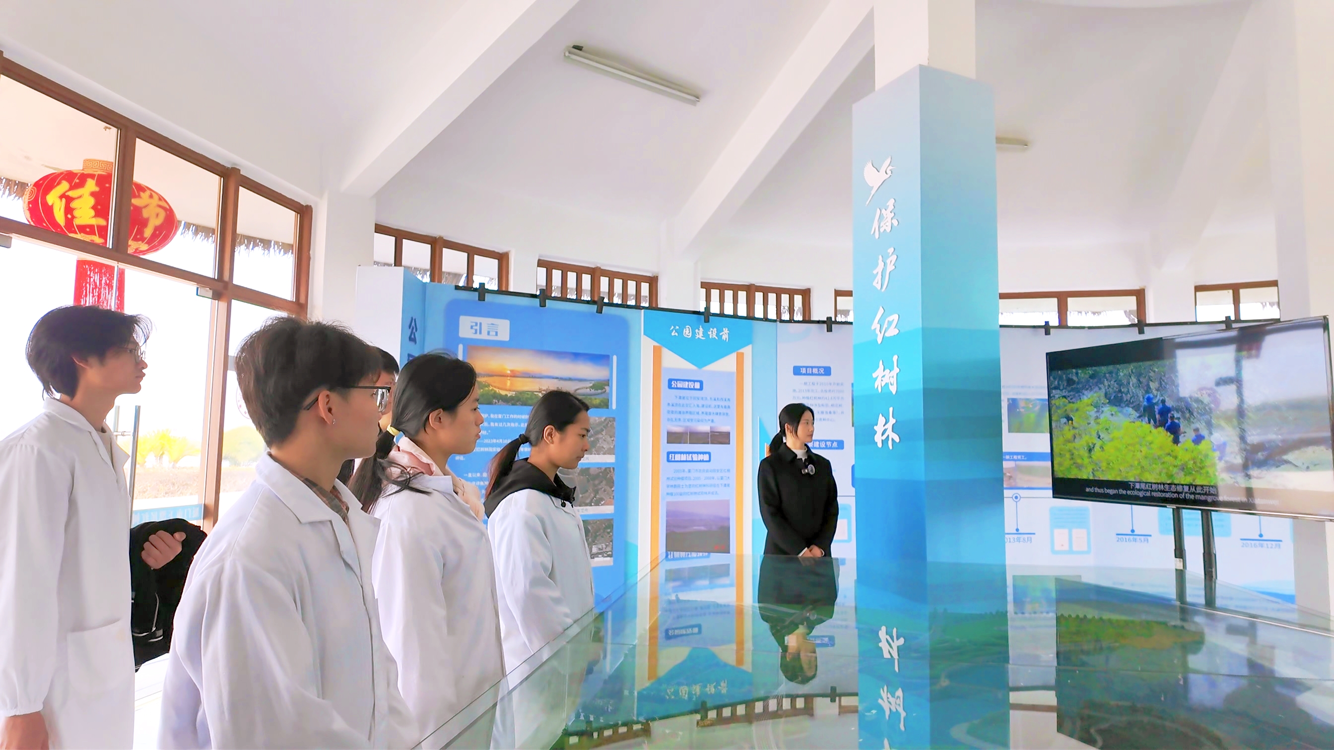 在公园工作人员的带领下,实践队员们参观红树林公园核心区域,聆听红树林生态系统及其保护措施的详细讲解,观看下潭尾红树林公园保护宣传视频,学习红树林保护技术经验。通过现场调研和交流,队员们深刻体会到红树林作为“海岸卫士”和“生物宝库”的重要意义,感受到保护湿地生态的迫切性。