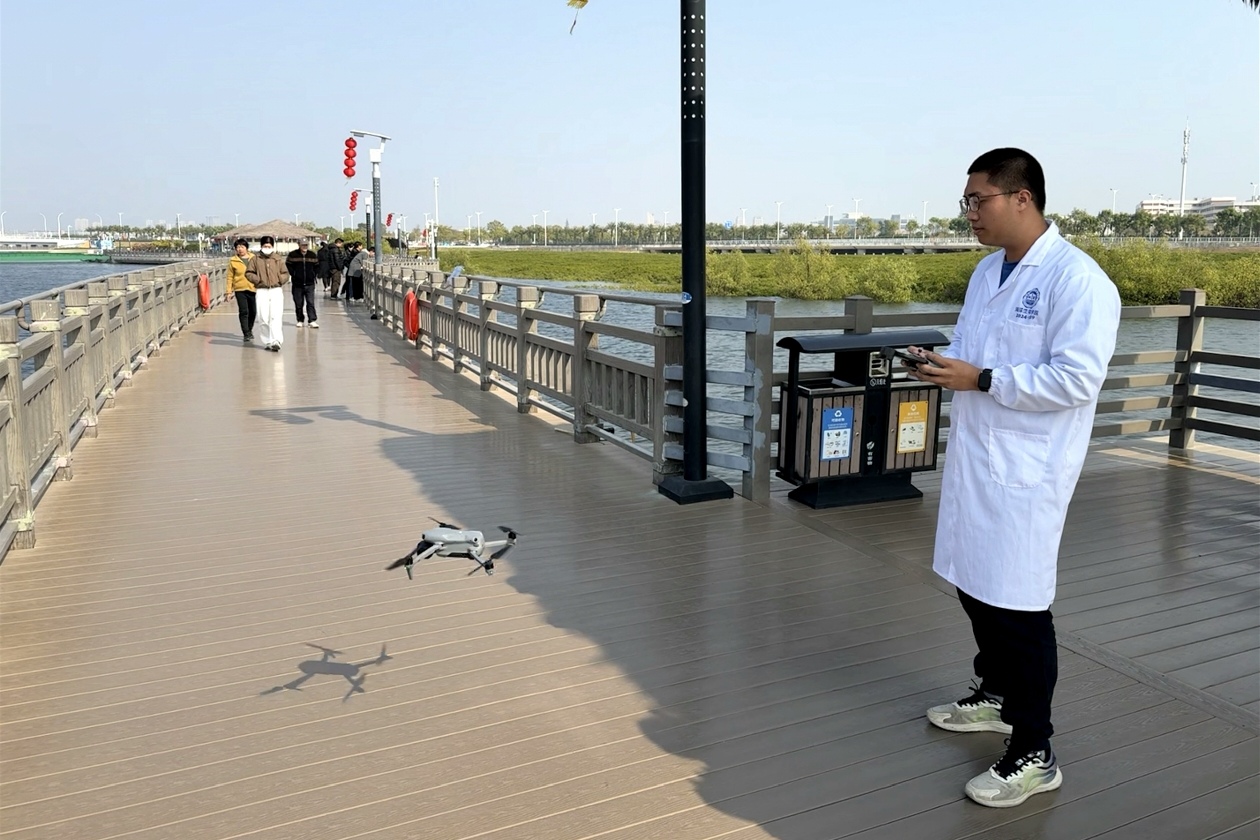 实践队深入湿地保护区,在带队老师的指导下,对下潭尾湿地公园进行水质检测。通过采水器采集湿地水样,借助无人机俯视航拍湿地公园,采集湿地的实时影像、植被状况、水体分布等数据,大幅提高数据采集效率。团队成员参加红树林树苗种植,采集红树林生长区域土壤样品,并分析土壤的营养成分、理化性质和微生物多样性,真实记录下湿地生态系统中宝贵的环境参数。