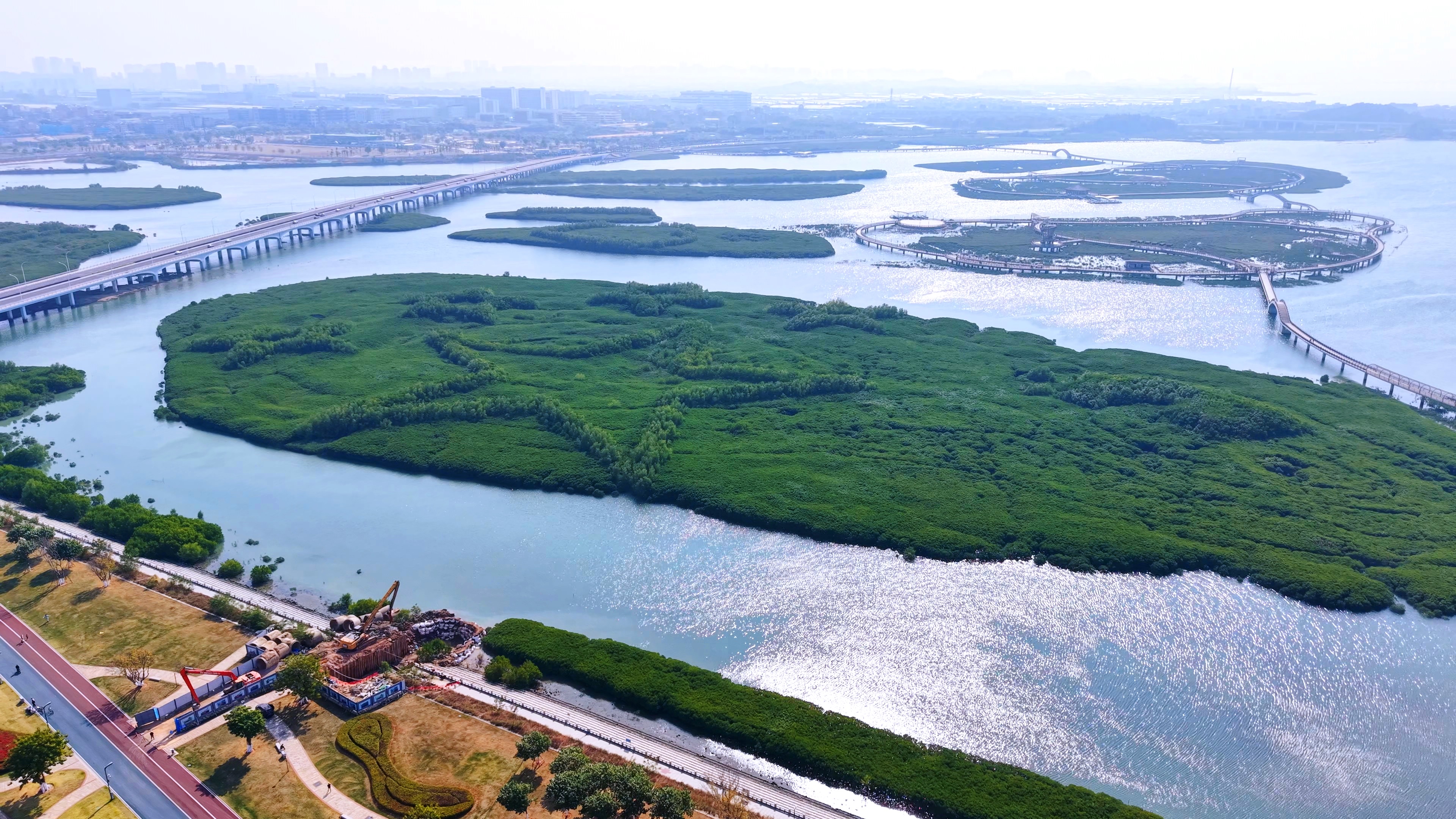 无人机航拍下潭尾湿地公园效果图