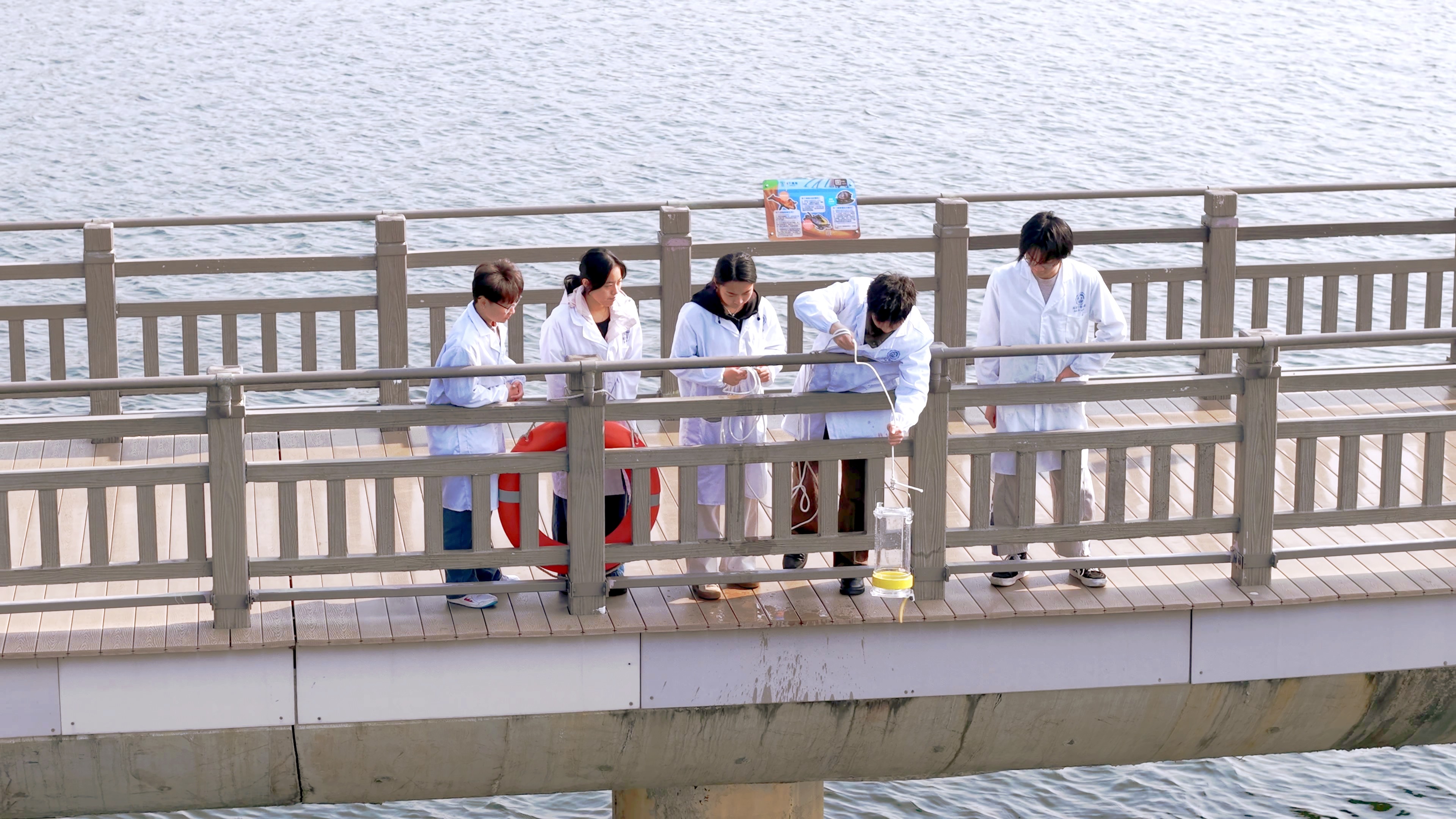 团队成员采集下潭尾湿地公园水样