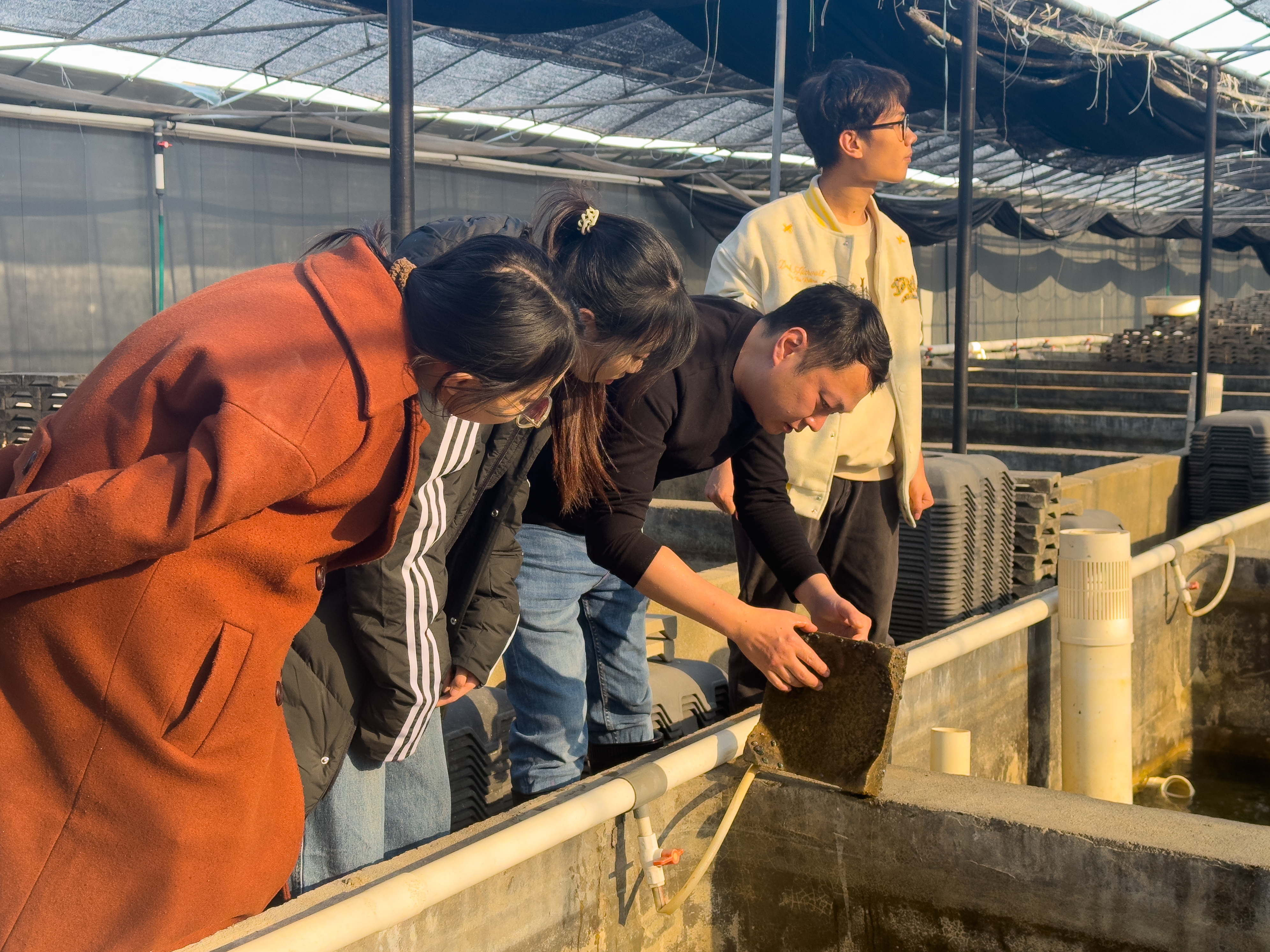 在石斑鱼养殖场,实践队开展水质检测、鱼类体长测量等多项服务工作,运用所学专业知识,为养殖企业提供技术支持,切实帮助企业解决实际问题,展现出扎实的专业素养和实践技能。