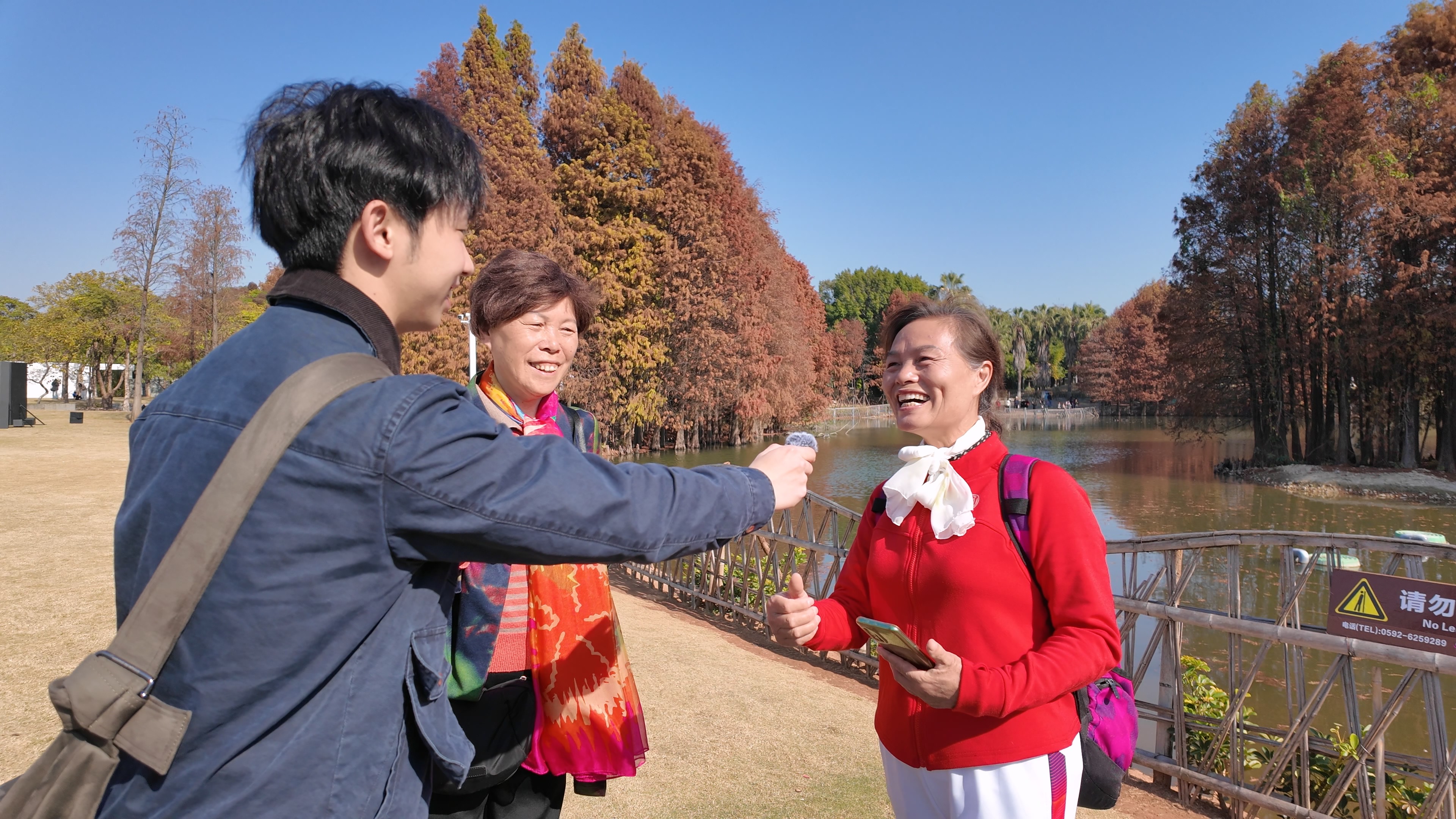 实践队来到厦门园林博览苑,与游客及当地居民进行互动交流,宣传湿地保护理念。通过面对面的沟通,让更多公众认识到科技在环境保护中的关键作用,并鼓励更多人投身生态文明建设。