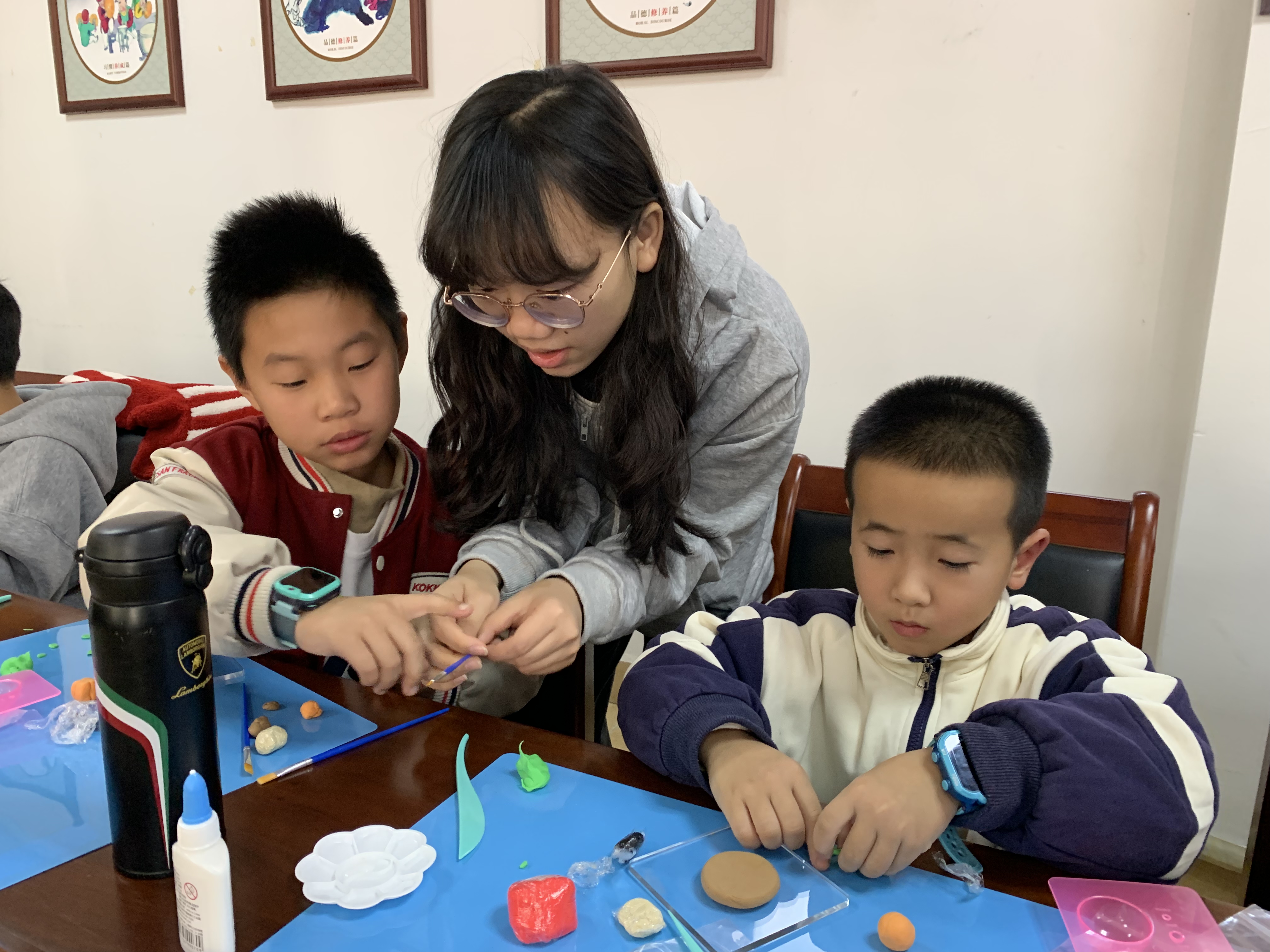 非遗“面塑”课堂上小朋友认真观察制作