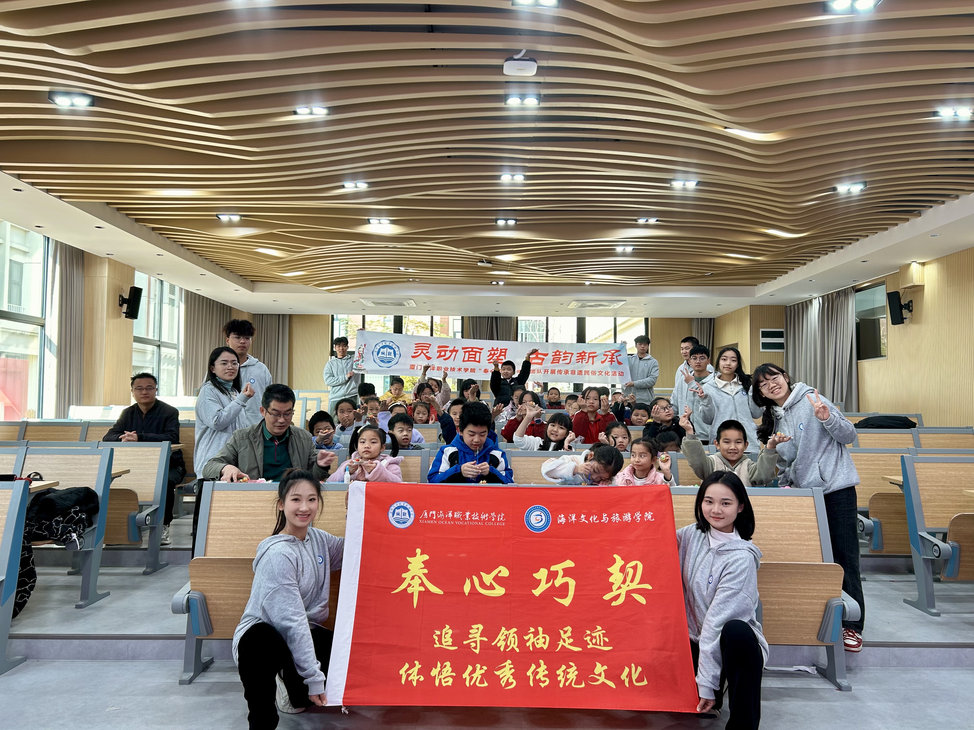 为深入学习贯彻习近平文化思想,扎实培育和践行社会主义核心价值观,大力弘扬中华优秀传统文化,推动非遗在新时代语境下的磅礴发展,厦门海洋职业技术学院海洋文化与旅游学院“奉心巧契”实践团队于1月15日—16日将传统非遗面塑技艺带进厦门市翔安区祥美社区、沙美村与厦大附属翔安实验学校,开展了一系列非遗面塑传承活动。