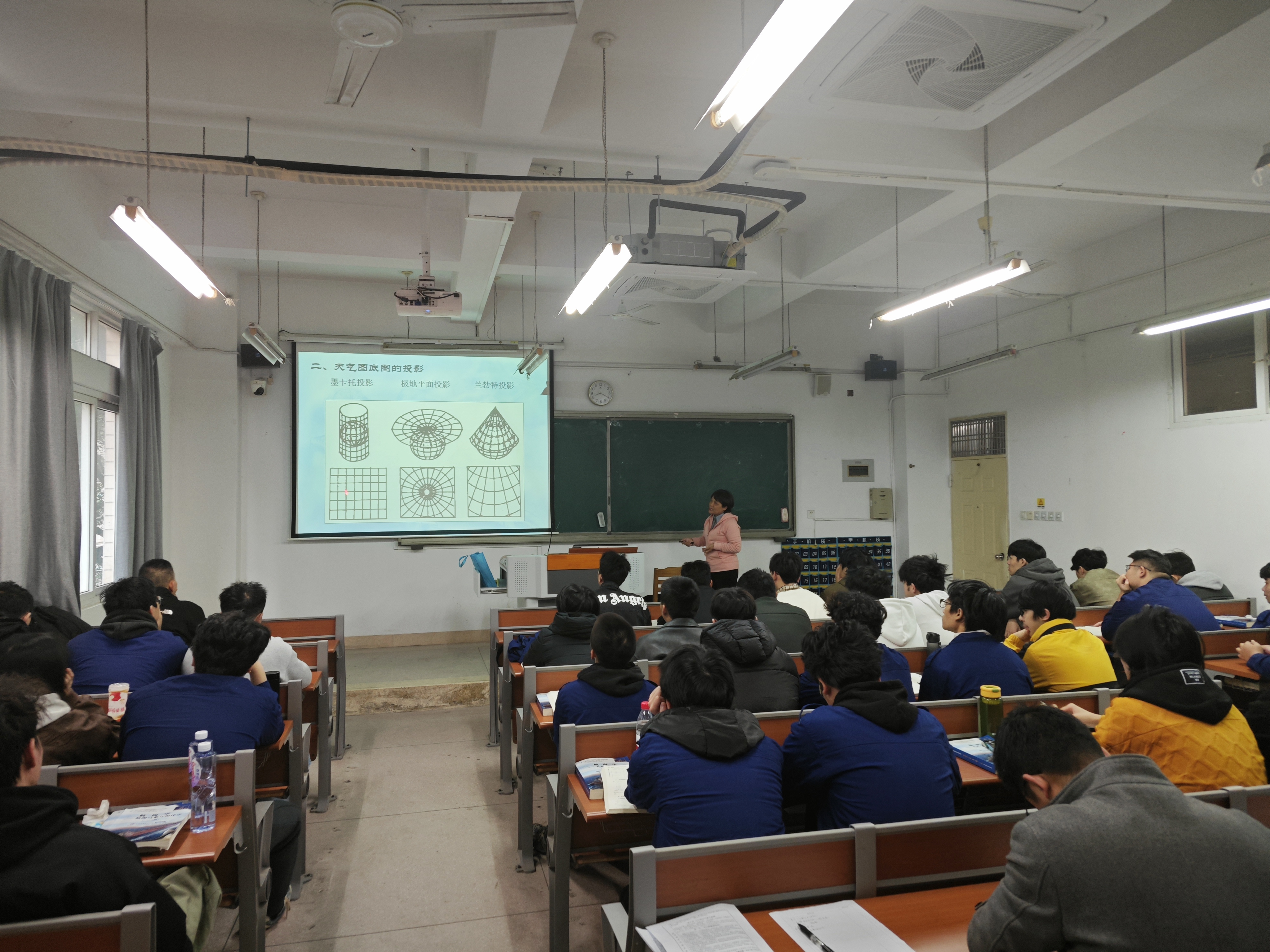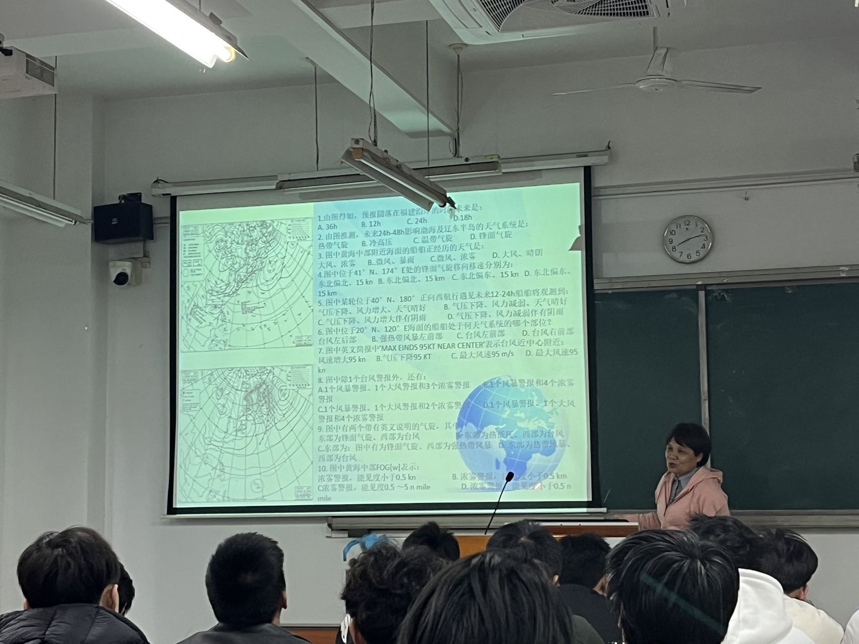 随后,钟老师将理论知识与生活实际相结合,利用最新的气象传真图深入分析近期厦门地区降温的趋势及其成因,让同学们能够将抽象的气象知识与具体的地理现象相联系,也使其能够直观地感受到气象条件对航海安全的影响。同时,为加深同学们对天气图投影方式的理解,钟老师还辅以视频做讲解,使得复杂的气象知识变得浅显易懂。