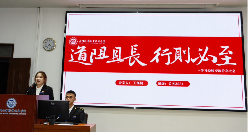 航海学院党总支组织员余诗静总结发言。她提到,大学是成长的关键时期,大家应积极追求德、智、体、美、劳全面发展,多参加校内外的各类竞赛活动,努力做一名“多边形战士”。同时也希望同学们在期末周能坚持诚信备考,继续以今天的学习热情努力求知,不断成长。